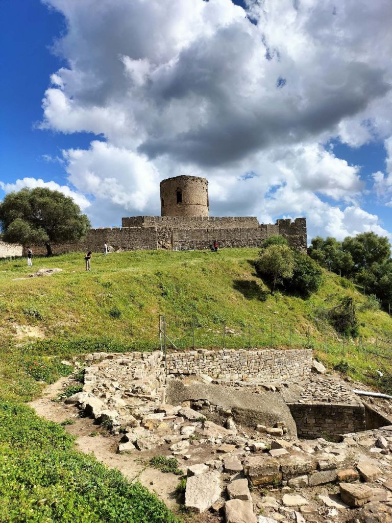 Subiendo el embarrado camino (foto Juanjo).Hay mucho barro, no vemos claro por donde seguir, y ese bicho negro nos da yuyu (foto Juanjo)El paisaje es espectacular, todo verde.Ganado vacuno. Bravo?Y ya tenemos Jimena a la vista, con su gran castillo en lo alto.Pero antes tenemos que pasar por la Estación de JimenaLlegamos a la Estación de Jimena donde aprovechamos para quitarnos el barro de las botas. Todavía nos quedan 2 km para llegar a nuestro hotel y todos hacia arriba, con unas cuestas de aúpa.Y ya en Jimena cuestas y más cuestas.Hasta llegar a nuestro hotel, limpio y cómodo. Decoración ecléctica pero sin abusar.Y como hay que reponer fuerzas nos comemos unas raciones en el restaurante La Brasa. Comida rica y bien atendidos.Y después de comer, unos a descansar y otros a visitar el castillo, el cual ha pasado por varias fases: desde el siglo I a.c. hasta el siglo III época romana, luego hasta el siglo XII etapa altomedieval, de los s. XII al XV fue fortaleza islámica, y en los s. XIV a XVI etapa bajomedieval.