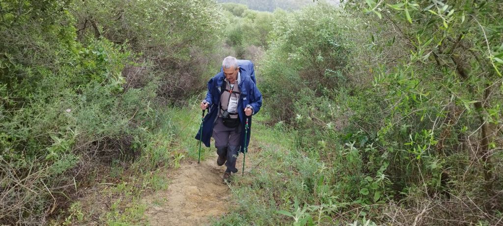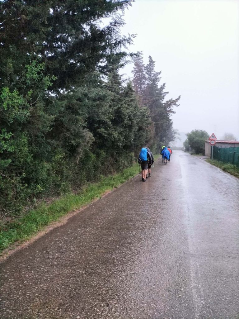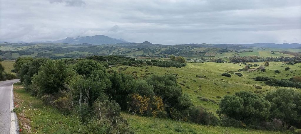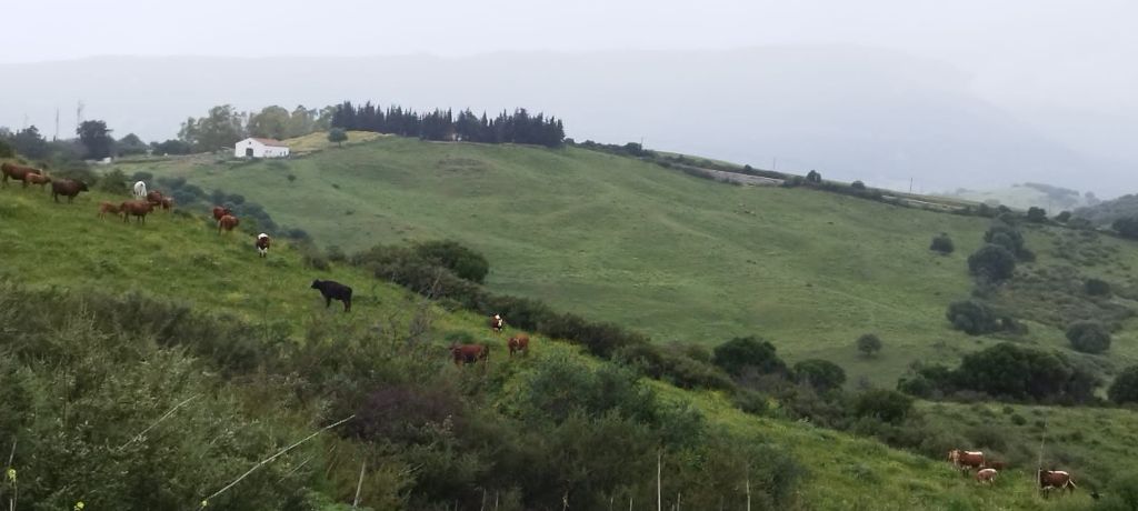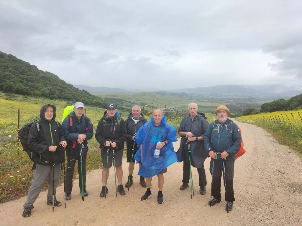 Etapa en teoría de 20,3 km que esperábamos acabar en 5:30 horas pero que al final se han convertido en 23,1km y 6:38 horas de las cuales 5:13 son en movimiento; el resto del tiempo estamos parados. Desnivel acumulado positivo 504m (datos extraídos del programa Base Camp). El motivo de la diferencia hay que achacárselo a la escasa, deficiente, confusa y a veces contradictoria señalización. Al final de la etapa hay varios kilómetros de carretera que hemos pretendido evitar siguiendo un track que llevábamos y que habían hecho con anterioridad otros peregrinos, por lo que nos hemos salido de la carretera intentando seguir la cañada Real de Manilva pero nos hemos ido metiendo en una zona en la que había mucho barro y gran cantidad de ganado vacuno que nos miraba no sabemos si amenazante o no. Al final hemos decidido, democráticamente por unanimidad, darnos la vuelta y seguir por la carretera. Todo ello nos ha hecho perder tiempo y hacer kilómetros de más. Comenzamos a caminar con lluvia persistente.