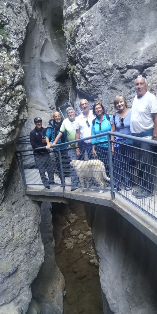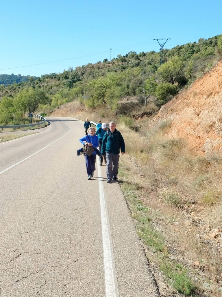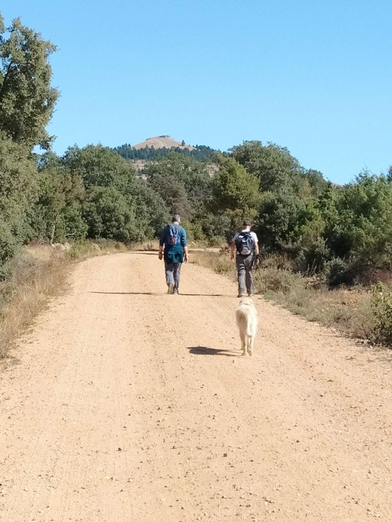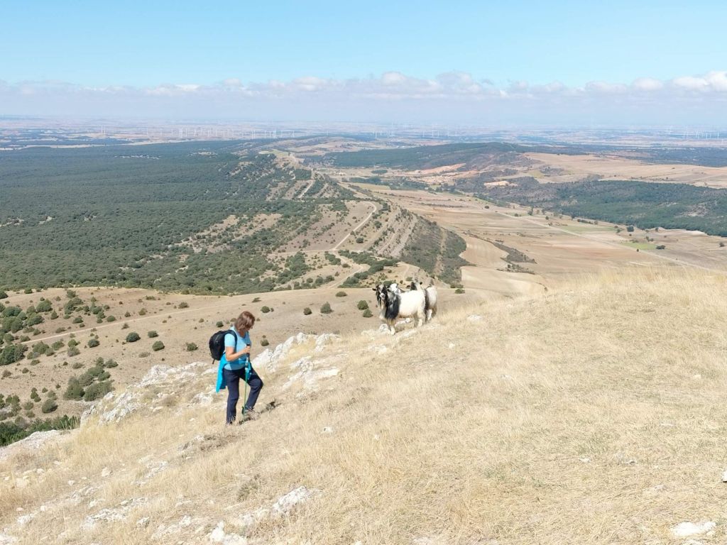 Iniciamos la ascensión subiendo por la carretera durante 1 kmVemos varios letreros con prohibición de coger setas y trufas. Mecachis! hoy que traíamos perro trufero.Ya por pista de tierra vemos nuestro objetivo.Foto de grupo con Castillejo al fondo.Castillejo cada vez más cerca.Ermita de Ntra. Sra. de las Mamblas.A partir de la ermita el camino se estrechaY se empina. Ya estamos cerca.Llegando vemos que en la cima hay tres cabrasEstás no!!!. Reyes y Josebe en la cima de Castillejo, al fondo La MuelaEstás si!!!. Ni Alai ha sido capaz de asustarles ladrandoles, eran muy descaradas.Foto de grupo en la cima de Castillejo.OtraEl cazador cazado. La cria de la cabra se mantiene en el borde del precipicio y Josean le saca una foto.Vamos bajando, primero por un camino empinado y con mucha piedra suelta, y después por una cómoda pista.Por aquí pasa el camino del Cid. Más información en https://www.caminodelcid.org/Ya estamos cerca de CovarrubiasCartel en CovarrubiasTerminada la ruta un poco de turisteo por Covarrubias. Junto al arco de entrada está la oficina de turismo. Estaba cerrada, una pena. El pueblo fue declarado «Uno de los Pueblos más bonitos de España» en 2017. Más información en https://es.wikipedia.org/wiki/CovarrubiasPlaza MayorFoto de grupo después de comer. Parece que algo nos ha sentado mal y estamos amarillos.Después nos vamos a visitar el desfiladero de La Yecla, totalmente recomendable.La chicas en el desfiladero (foto Josean)Foto de grupo en la que, por fin estamos todos (foto Josean)Completamos el recorrido del desfiladero ida y vuelta y nos vamos a ver Santo Domingo de Silos.