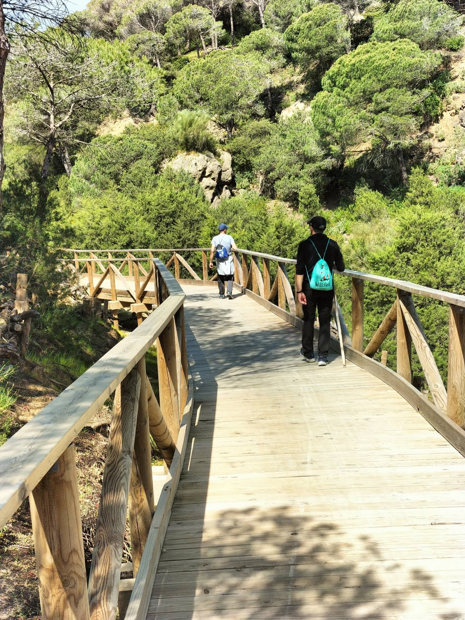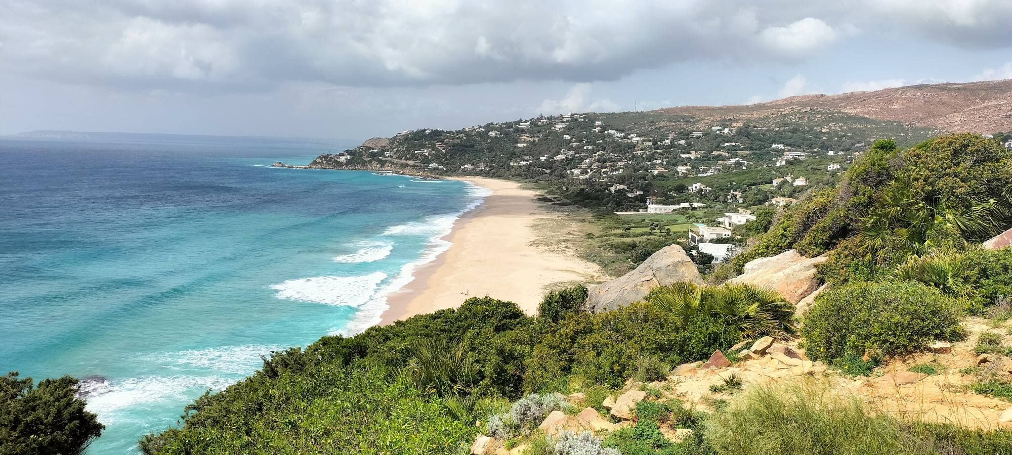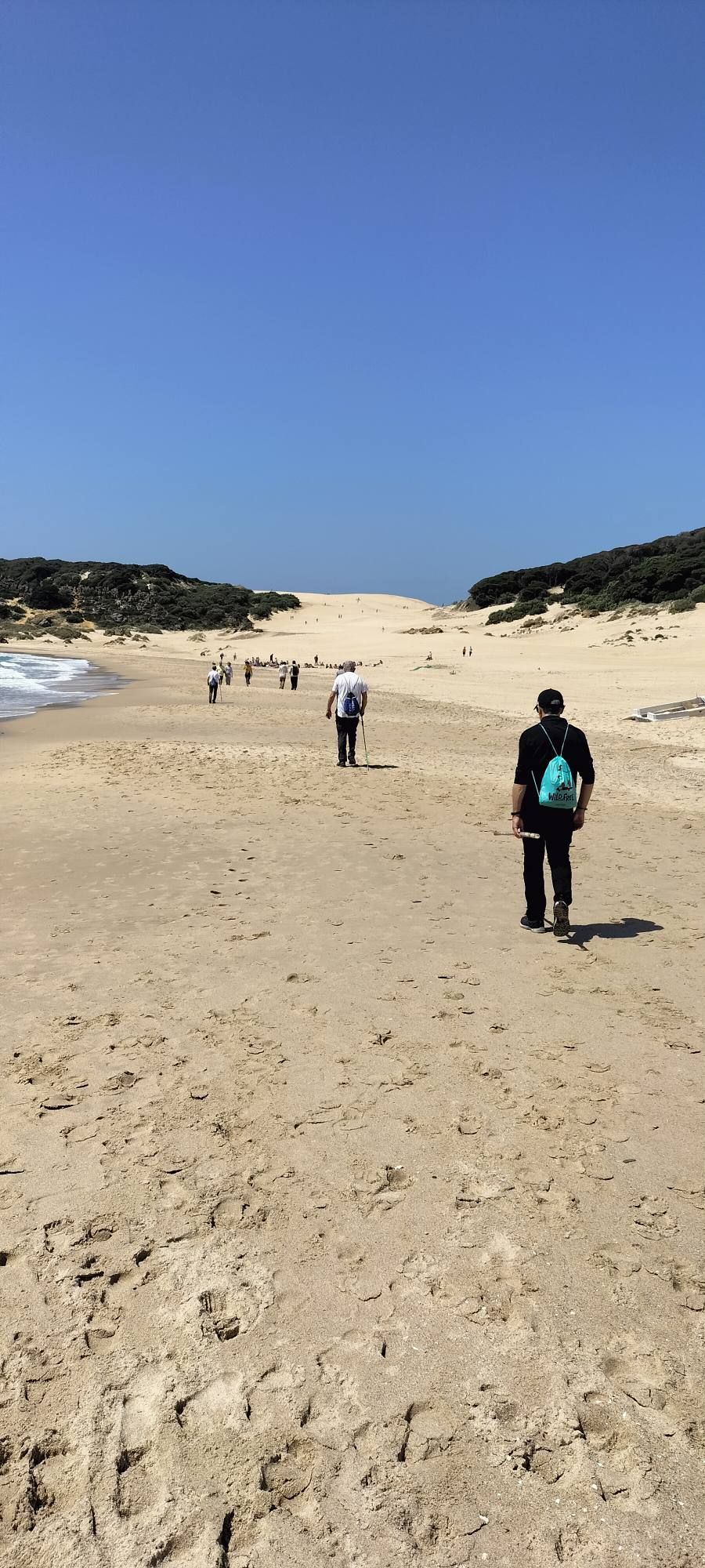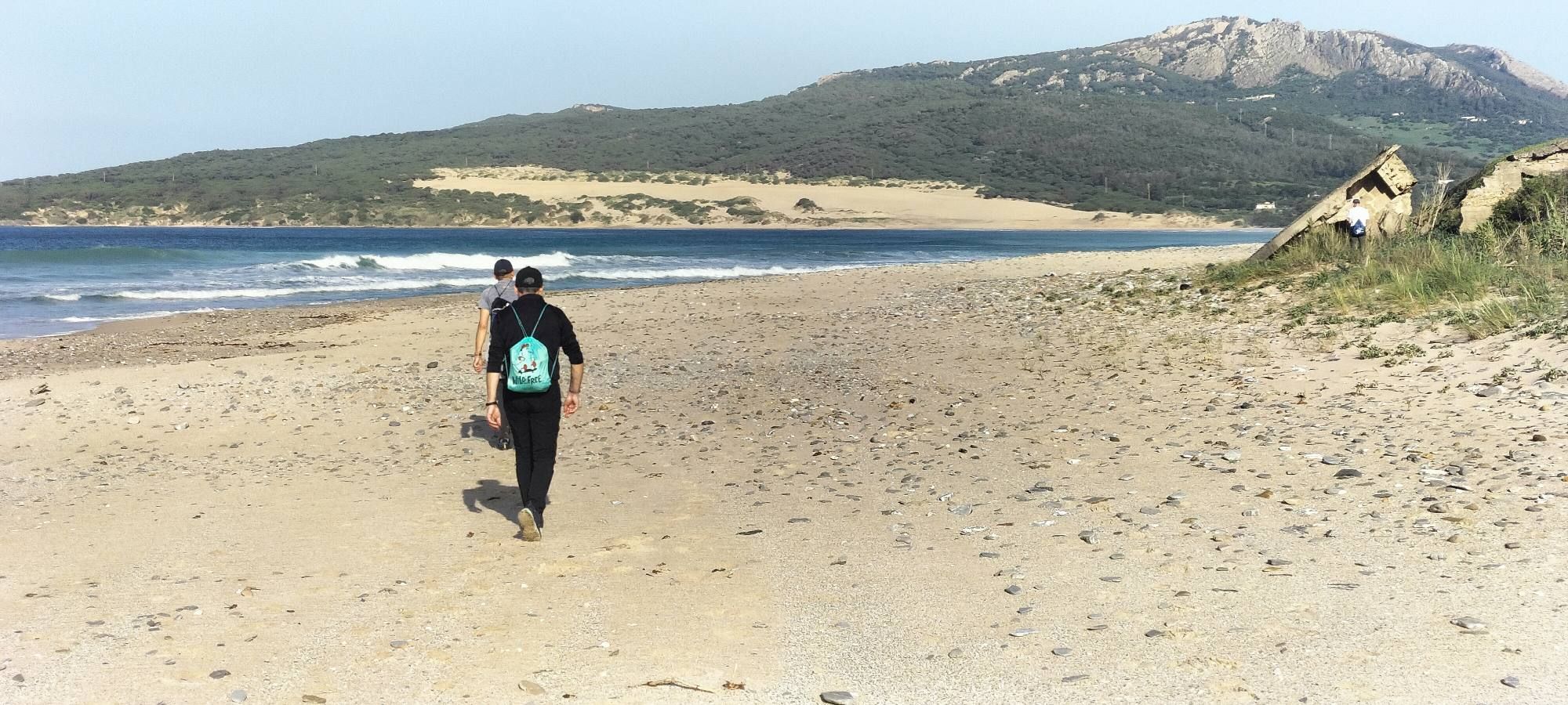 La cuadrilla a punto de iniciar la faena. Todavía hace fresquito (foto Juanjo).Durante un buen rato caminamos por pasarelas de madera que van sobre la arena o las marismas.Desembocadura de un río en Tarifa.Aquí el GR-145 que es la ruta de gran recorrido «Arco Atlantico» que estamos haciendo nosotros, coincide con un camino de Santiago «vía del Estrecho». Seguimos caminando por pasarelas.Todos los caminos que pasan por aquí, incluso la ruta europea E-9 la cual llega hasta Estonia. Hay otros tramos que van junto a la carretera, lo que los hace molestos por el ruido.En un momento dado hay que caminar por la playa, lo que resulta más cansado, pero como todavía llevamos recorrido muy poco, no nos importa.Aquí subiendo la carretera sue atraviesa la duna de Valdevaqueros. A quién se le habrá ocurrido tal cosa ya que se va cubriendo de arena y cada cierto tiempo la tienen que retirar con excavadoras.Es el primer repecho del día, pero como tambien es el primer día vamos muy animados.Marcas del camino de Santiago.Vista de la playa y ensenada de Valdevaqueros desde la duna.Posando sobre la duna de Valdevaqueros.Otra foto más.Atravesamos una zona militar en desuso, en la que había este extraño faro.Atravesamos unos pinares por una pista de tierra compactada la cual salvaba los accidentes del terreno con pasarelas y puentes. Otra construcción para salvar un barranco.Llegando a la playa de Bolonia. Al fondo se puede ver la duna de Bolonia.Antes de llegar a la duna pasamos junto a las ruinas romanas de Baelo Claudia.Más ruinas en Baelo Claudia.Nos dirigimos hacia la duna de Bolonia.Subiendo por la duna de Bolonia. Es un caminar pesado porque la arena es blanda (foto Segun)Ya hemos subido a la duna, al fondo la playa de Bolonia.Otra foto en la cima de la duna para que se vea que yo también estaba.Vista lateral de la duna de Bolonia.Atravesamos una zona de ganado suelto, no sabemos si sera bravo. Hay quien ha pasado nervioso por el lugar (foto Felipe)Playa y urbanizaciones de Atlanterra ¡Menudos casoplones!. Y poco después llegamos a Zahara de los Atunes donde ponemos fin a la etapa.