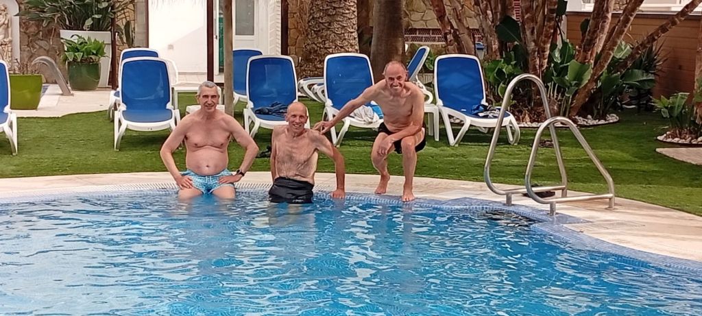 Algunos terminamos en la piscina del hotel, para relajarnos.