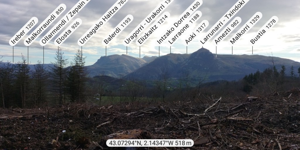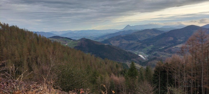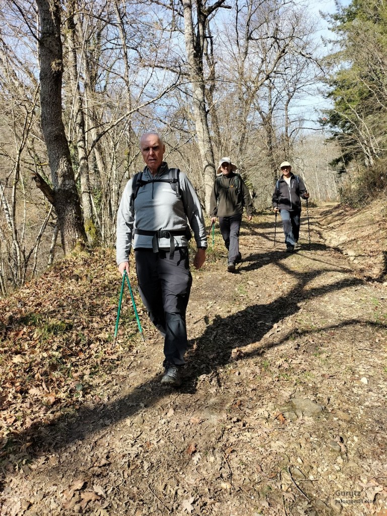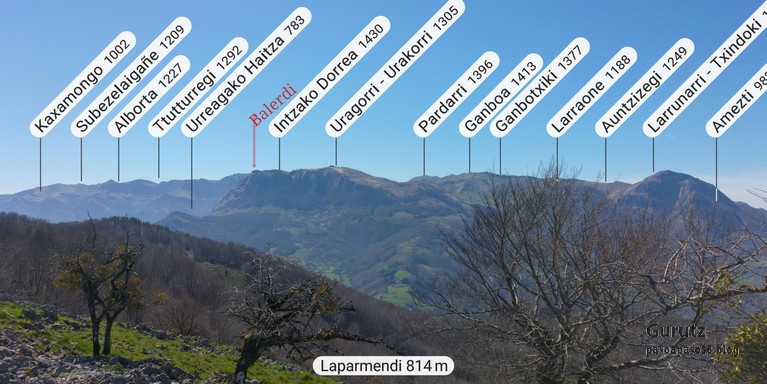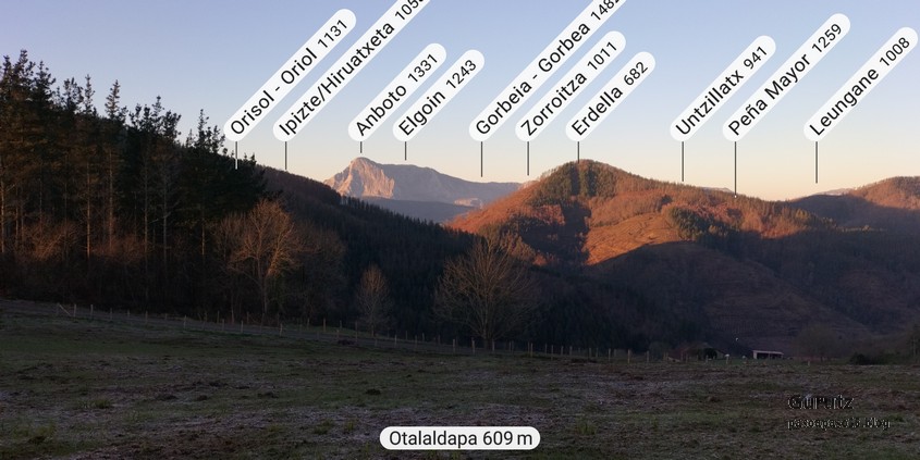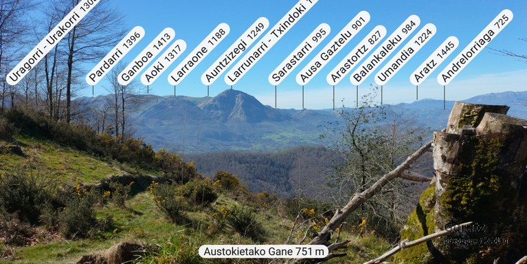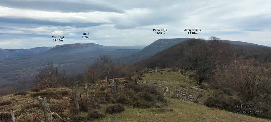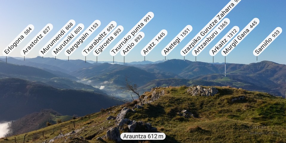 Hoy nos juntamos cinco mendizales para hacer esta circular, Mikel, Fede, Fernando, Javier y Juan Cruz. Nos vamos hasta el alto de Lizarraga para, desde allí, visitar el arco de Portupekoleze, la cueva de Lezehaundi y ascender a las cimas de Bargattente (1125), Posutxar (1131), San Adrián (1109), Iruelorrieta (1086), Peña Arrangarte (1086) y Ollideko Bizkarra (1068). En total hemos hecho 15,7 km, con un desnivel positivo acumulado de 600 m. el cual hemos completado en 5:52 horas. Al inicio de la ruta hacía frio, unos 6 grados, pero poco a poco ha ido subiendo la temperatura y al final hacía calor. La mayor parte del día hemos tenido cielos despejados.
