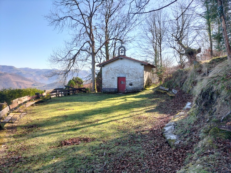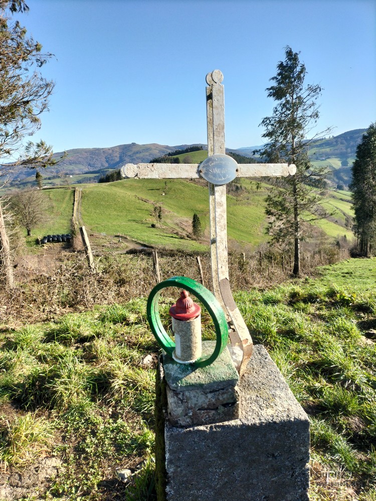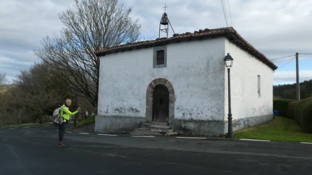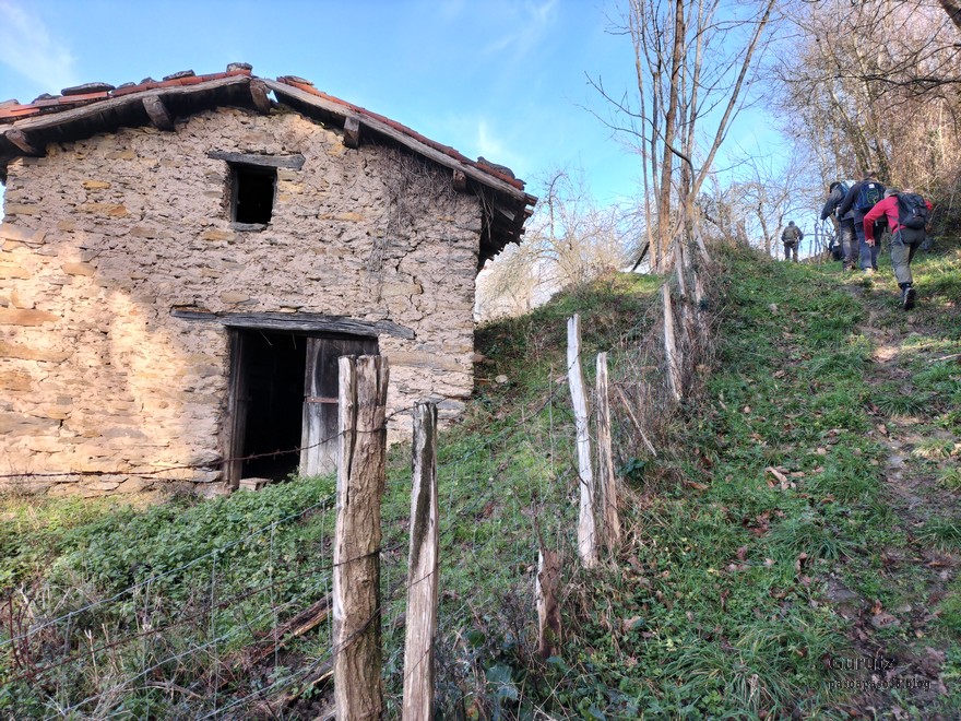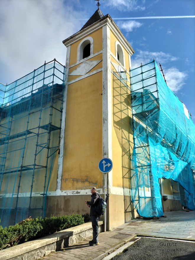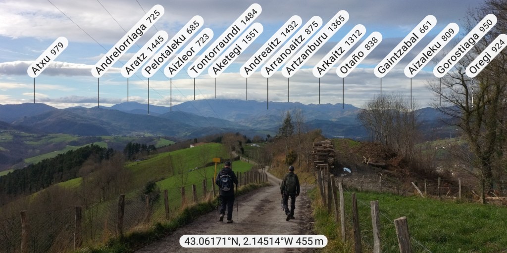 A Legorreta vamos en tren. Al llegar encontramos niebla.Cruzando el puente sobre el río Oria; por este punto pasa el camino de Santiago en su versión «Camino Vasco del interior», por eso el muro tiene una concha de peregrino. Poco despues llegamos a la plaza principal y aprovechamos para tomar una café.El grupo delante de la casa consistorial y de la cafetería.Ya casi a las afueras de Legorreta hay este humilladero.Empezamos a ascender por fuerte pendiente de hormigón. La niebla que nos rodea irá desapareciendo a medida que ascendamos.A ratos hay asfalto.Junto al caserío Urdaneta-Azpi.Ya hemos dejado abajo la nieblas y vemos los montes de los alrededores, entre los que destaca la cima rocosa de Murumendi.Murumendi emerge de la niebla (Foto Koldo)Monte Maramendi, en las estribaciones de Murumendi, Íbamos contentos y alegres hasta que, de repente había que atravesar un barrizal. Aquí Koldo avanzando con cuidado y protestando (inhabitual)Mikel parece que va a perder el equilibrio; yo tenía la cámara preparada, pero no hubo suerte, nadie se cayó; eso sí, las botas se embarraron mucho.Una vista de Murumendi desde el Barrio Sarasola.casa solar y escudo de Sarasola.A partir de aquí comienza una carretera hormigonada. En la foto los miembros del grupo intentando ver Itsasondo entre los árboles.Un grupo de caballos pastando junto al cruce que nos llevará a Altzaga, al fondo se puede distinguir OrdiziaAquí se ve mejor Ordizia.A la entrada de Altzaga había un rosal si ninguna hoja y con un solo capullo. No me he podido resistir a hacerle una fotoIglesia de Altzaga con una gran encina delante.Juanjo acercándose al panel que informa acerca de la centenaria encina. Tiene 3,6 metros de circunferencia y una altura de 18 metros. A pesar de su porte no está catalogado como árbol singular de Gipuzkoa.De Altzaga salimos por una pista hormigonada con mucha pendiente por lo que había que tener cuidado de no resbalar con el musgo.Borda a un lado del empinado camino.Ovejitas pastando con la vista de Txindoki al fondo.Vista de Itasondo.A lo largo de buena parte del recorrido pasamos por el PR-GI 1 «Arama-Altzagarate-Arama»Cazador cazado fotografiando la Errmita de Altzagarate (Foto Juanjo)Vista de Ordizia desde el mirador de Altzagarate (Foto Juanjo)Una vista de Aralar desde el mirador de Altzagarate.Detalle de los picos de Aralar.La presencia de Txindoki es espectacular.Tras dejar Altzagarate la carretera hormigonada se transforma en una pista de tierra que discurre entre un pinar.Estos se han quedado atrás porque no paran de hablar, aunque siempre están de acuerdo uno con el otro en todos los temas.Cambiamos de vertiente y tenemos Orendain a la vista, también los montes Otsabio y Laparmendi en cuyas laderas de puede ver la cantera de Altzo.una vista extraordinaria hacia Aralar.Llegamos a la zona de San Juan Iturri, con su fuente y lavadero. Un brindis con agua fresquita por la jornada de monte que estamos disfrutando (Foto Fernando)Agua sin tratar. Menos mal que he brindado pero no he bebido.El lavadero.Había un área recreativa con mesas y bancos y aprovechamos para almorzar. A partir de aqui el grupo se escindió y Juanjo, que tenía algún compromiso de regresar temprano, se fue a Baliarrain primero y después a Ikaztegieta pasando por el embalse de Ibiur. Hizo unas fotos de los lugares por donde pasó que he puesto al final del reportaje.Vamos bajando por carretera la mayor parte del tiempo; abajo podemos ver Altzaga y arriba Murumendi y su cordal.Omnipresente Txindoki.Dos caballos pastando. Los montes de detrás no se cuales son.Vista hacia AizkorriPozo de agua junto al caserío Abali (Foto Koldo)Un árbol con Kakis muy cerca de Arama.Ya estamos llegando a Arama.Frontón de Arama, junto al que había una fuente donde aprovechamos para quitar el barro a las botas y cambiarnos de ropa (Foto Koldo)Koldo junto a la iglesia de Arama, la cual tiene una forma y un color poco habituales por esta zona; se ve desde la carretera N-1. Junto a ella hemos comido un menú del día en el Ostatu Toki Alai y, de allí, en un corto trayecto, hemos ido a la estación de tren de Itsasondo donde hemos cogido el tren que nos ha devuelto a Donosti.