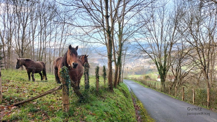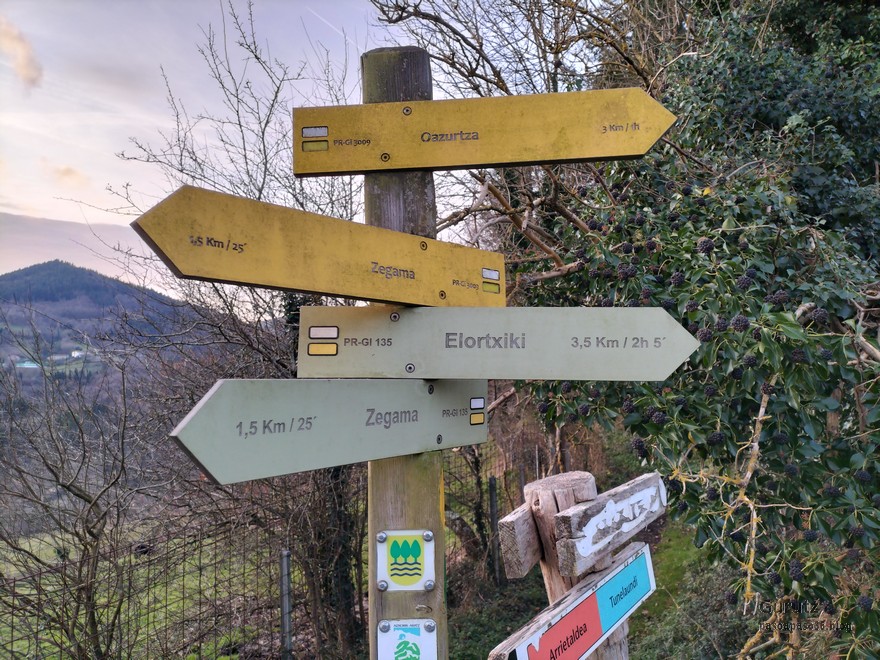 Foto de grupo en el inicio, Fernando, Javier, Fede, Felipe y Koldo. Bonito cielo al amanecer.Yo también estaba.La sierra de Aizkorri con txapela.Hospital de peregrinos sito en el parque Anduetza de ZegamaEncrucijada, nosotros vamos hacia Elortxiki.Ascendiendo, al principio por cómoda pista hormigonada, más tarde por pistas de tierra y caminos anchos y cómodos, aunque algunos con considerable pendiente.Bonitos caballos en una borda al lado del camino.Seguimos ascendiendo, el chaval a toda velocidad, por eso sale movido, y el resto, los viejos, detrás, muuuuchoooo más despacio.Pasamos entre las cercas que rodean los prados donde había algunas bordas que estaban rodeadas de troncos secos de castaño.Javier y Fernando pasan al lado de unos troncos de castaños secos.Aizkorri con nubes bajas. Se tiene que andar mal por ahí arriba entre la niebla.Restos de lo que parece una antigua calzada.Buena parte del camino estaba balizado con marcas de un PR.Vista hacia el Goierri con Aralar al fondo.Zegama en el fondo del valle (Foto Fernando)Parece que por ahi arriba se va despejandoEste es el primer respiradero del túnel, en concreto es el nº 5Foto de grupo junto al respiradero, el cual está cubierto por una reja para evitar que la gente eche piedras.Yo también estaba (Foto Koldo)Felipe y Koldo con Udalaitz y Anboto detrásRefugio de ElortxikiCima y buzón de ElortxikiDetalle del buzónParece que hace frio, ¡eh!. Felipe y Javier en la cima de Elortxiki con Udalaitz y Anboto al fondo y la sierra de Aloña a la izquierdaFoto del grupo en Elortxiki, con Udalaitz y Anboto al fondo (Foto Fernando)Enfrente la siguiente cima, Arranoaitz, y abajo el collado de Usokozelai, punto de paso para los peregrinos que van desde Donostia a Aranzazu (GR34)caballito pastando con la sierra de Aloña detrás.Buzón en ArranoaitzFoto de cima en Arranoaitz. El monte que está a la derecha del todo es Artzanburu.Con el Goierri al fondo (Foto Fernando)Vista hacia el Goierri y AralarVista hacia la sierra de AloñaNo había visto nunca caballos con el mismo comportamiento que Alai, mendigando comidaCuando estabamos almorzando se han puesto a una distancia prudencial y no han dejado de mirarnos para ver si les dábamos algo. Qué pena que no estaba Shegun, que seguro que les hubiera dado algo, aunque sea un torrezno.Aquí bajando en dirección al respiradero nº 6Respiradero nº 6Detalle de las cimas de la sierra de AizkorriCima de OazurzaEl grupo en Oazurza atendiendo las redes socialesA lo largo del recorrido, además de las marcas blanquiamarillas del PR, había estos círculos amarillos que balizan el maratón de montaña Zegama-Aizkorri.Kilómetro 38 de la Zegama-Aizkorri; cuando tu llegues aquí, puedes estar seguro de que Kylian Jornet ya habrá terminadoMuro cubierto de musgoGran roble con cuatro brazos.Vista hacia AizkorriEstación de Zegama (En desuso; el tren no para).Ya casi terminando volvemos a pasar por otra especie de calzada.Fin de ruta con el antiguo cartel anunciador del nombre de la localidad sin la nomenclatura en Euskara.