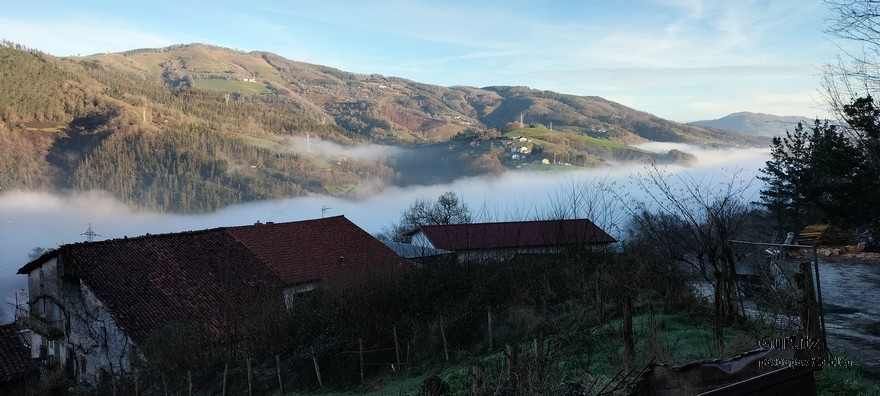 Hoy nos hemos juntado seis expedicionarios para hacer una travesía desde Legorreta hasta Isasondo, pero como la distancia entre ambas localidades es de solo 3 km., hemos dado un rodeo pasando por las pequeñas localidades de Altzaga y Arama, además de coronar el monte Altzagamendi (539 m.). Hemos hecho 15 km. con 577 m. de desnivel positivo acumulado, el cual hemos completado en 6:41 horas; el motivo de que hayamos tardado tanto es porque, además de las paradas habituales (Almuerzo, fotos, etc.) hemos tenido paradas menos habituales dado el carácter extrovertido de algún expedicionario (Charleta con los baserritarras de la zona) y, además, hemos comido en Arama poco antes de terminar el recorrido. El tiempo efectivo de marcha ha sido de 4:01 horas. Hemos tenido un día muy agradable con sol y pocas nubes. Al inicio había niebla en el valle.