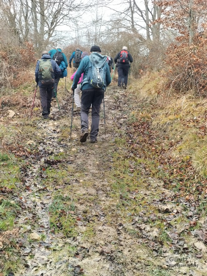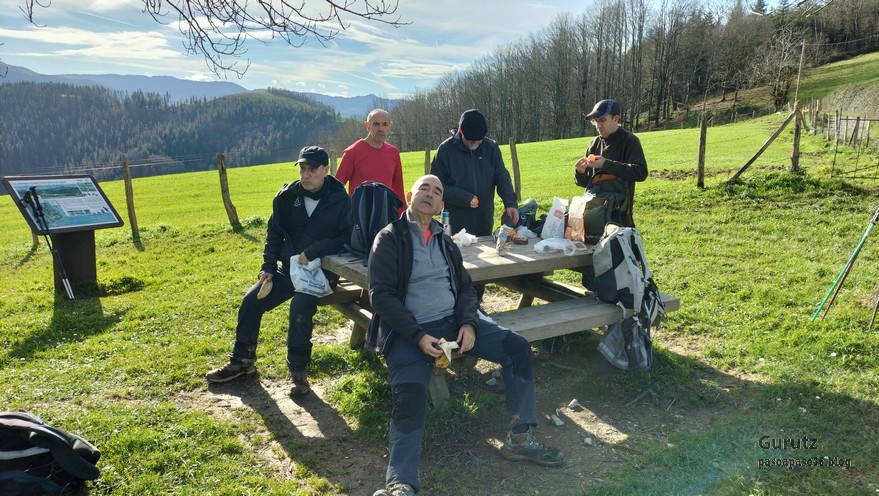 Esto es todo lo que ha dado de si la jornada de monte. Ahora nos cambiamos de ropa, limpiamos el barro de las botas y bastones, y nos vamos a comer un menú del día a Agurain, y después hacemos un poco de turisteo por Agurain, para terminar visitando el dolmen de Aizkomendi en Egilaz.