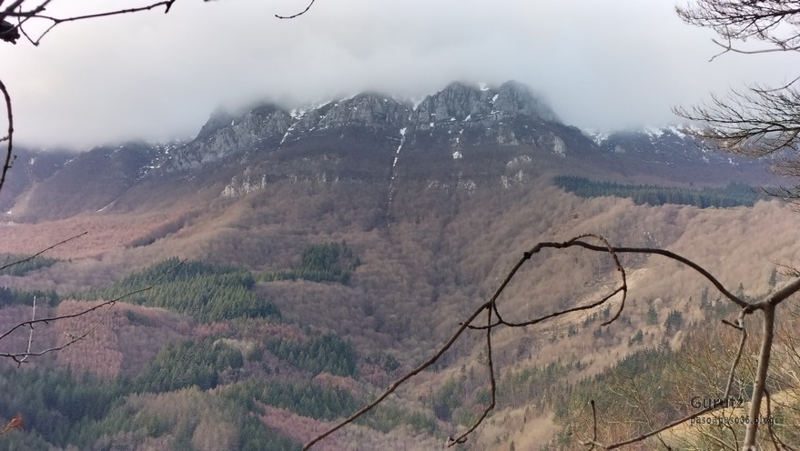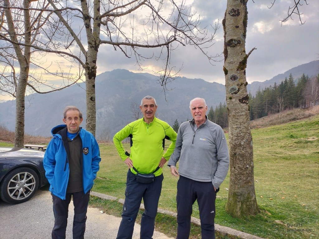 Hoy nos hemos juntado tres amigos para hacer un recorrido que nos lleva desde el aparcamiento de Aittola a las cimas de Aittolako Gurutzea (639), Sesiarte (778) y Aittolako Punta (674). Teníamos previsto ascender también a Agido (739), pero el fortísimo viento que nos zarandeaba en la subida a Sesiarte nos ha obligado a dejarlo para otra vez. Hemos hecho un recorrido de 5,6 km. con un desnivel positivo acumulado de 478 m. en el que hemos empleado 2:34 horas. Viento sur, fortísimo y frio que nos ha zarandeado y puesto en peligro.