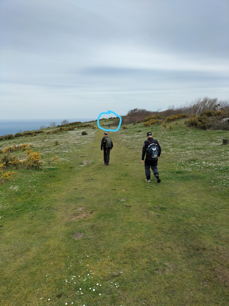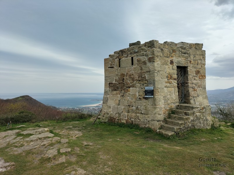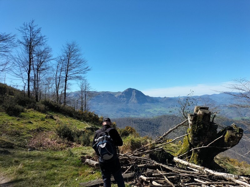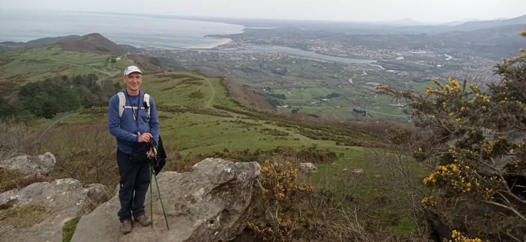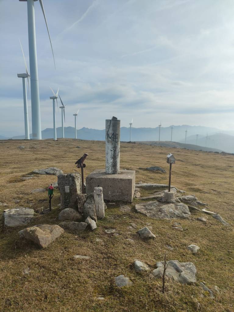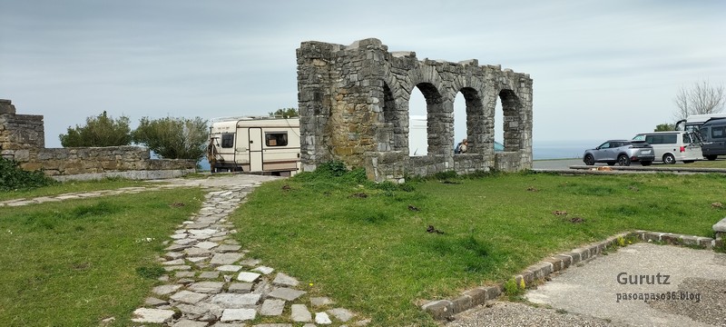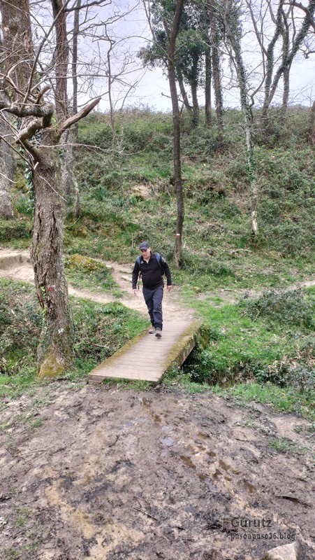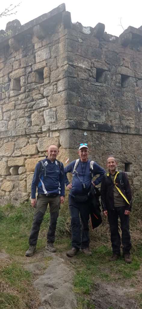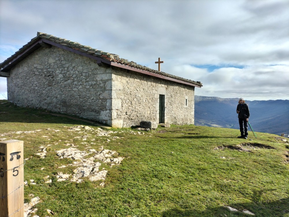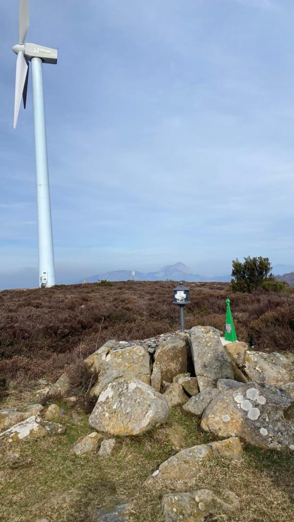 Video tomado en Mitxintxola en el que se puede apreciar el fuerte viento (Vídeo Fernando).Descendemos de Mitxintxola en dirección a la carretera, la cual cruzamos cerca del merendero, atravesamos un puentecito de madera que hicieron cuando quisieron promocionar el sendero Talaia. Este puente resulta útil, pero otras construcciones …Fernando cruzando el puentecito.Pasando junto a una de las construcciones que han devenido inútiles. Se hicieron para que los ciclistas y los senderistas salvásemos las vallas de alambre existentes, pero por lo que se ve ni a unos, ni a otros, nos ha convencido el sistema, la valla de alambre ha desaparecido y las escaleras de madera ya no las utiliza nadie.Juanjo en el primer torreón «Lehenbiziko Dorrea».Foto de grupo en «Lehenbiziko Dorrea» ( Foto Fernando)Ya vemos las antenas de Jaizkibel, ¡allá vamos!Seguimos por la ladera norte de Jaizkibel por lo que el viento no nos molesta apenas.Nos acercamos al «Bigarren Dorrea».Foto de grupo al pie de «Bigarren Dorrea» (Foto Juanjo).«Bigarren Dorrea»Fernando ante «Xangaxi Dorrea».ya estamos en la cima de Allerru.Vértice geodésico en la cima y, al fondo, Peñas de Aia y Larhun.Fernando con cara de felicidad por estar en el punto más alto de la travesía, Allerru (547m.)Fernando posando en Allerru con Peñas de Aia y larhun detrás¡Vamos para abajo!Llegamos a las ruinas del antiguo parador; el aparcamiento está lleno de autocaravanas.El mirador desde el que se pueden ver los montes de alrededor.Mesa de orientación instalada en el mirador; nos fijamos y con su ayuda pudimos ver hasta el monte Ori (Foto Juanjo).Otra perspectiva del mirador (Foto Juanjo).Y otra perspectiva del mirador y del camino ya recorrido.Subiendo desde el mirador hacia «Santa Barbara Dorrea, Torreón IV».«Santa Barbara Dorrea, Torreón IV».Llegamos al «Torreón IV, Erramuzko Dorrea».Bajamos atravesando un prado lleno de margaritas. A los lejos va Juanjo, quien desde que terminó la Maratón de Sevilla está salido. Perdón, «Salido» no es la expresión que quería utilizar, quería decir «está que se sale», salido probablemente también andará, pero como no es de los que alardean, no lo podemos saber seguro. Un posado con la bahía de Txingudi detrás.Irún, Hondarribi y Hendaia.Bahía de Txingudi y playa de Hendaía.Ya estamos en Guadalupe.Delante de la ermita de Guadalupe, decidiendo por donde bajar a Hondarribi (Foto Juanjo).Ya bajando de Guadalupe encontramos un vía crucis, justo lo que nos estaba pareciendo el final de está larga travesía.