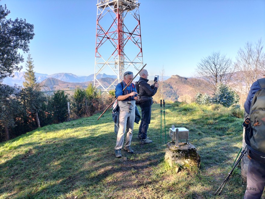 Panorámica desde la cima de Egoarbitza (vídeo Fede).Dejamos Egoarbitza atrás; a su pie el refugio de Eguaspe, aparentemente cerrado (Foto Koldo).Volvemos por donde hemos venido hasta llegar a donde tenemos aparcado el coche. El frio todavía es intenso, la escarcha se mantiene.Otra vez en el alto de Karabieta.Y nos vamos hacia Azkonabieta, que es el monte que tiene la antenaSon las 11:38 y todavía se mantiene la escarcha.En la cima de Azkonabieta.Foto de grupo en la cima, como de costumbre Alai dando la espalda (foto Koldo)Buzón de AzkonabietaBajamos de Azkonabieta y otra vez toca subir, está vez hacia Galdaramuño.Ya casi en Galdaramuño las nubes bajas se han disuelto y abajo podemos ver Éibar y los campos de futbol de Unbe.Cima y buzón de Galdaramuño, y lomo de Alai.Vista hacia Bizkaia, se pueden apreciar la población de Ermua, ya sin nubes bajas y, al fondo, el monte Oiz (Foto Koldo)Ermita de Santiago en el núcleo de Asurtza.Y por cómoda pista, primero, y carretera después nos vamos hasta el coche; nos cambiamos porque traemos bastante barro y nos dirigimos a Elgeta a comer un menú del día.Iglesia de Elgetacharset=InvalidCharsetId