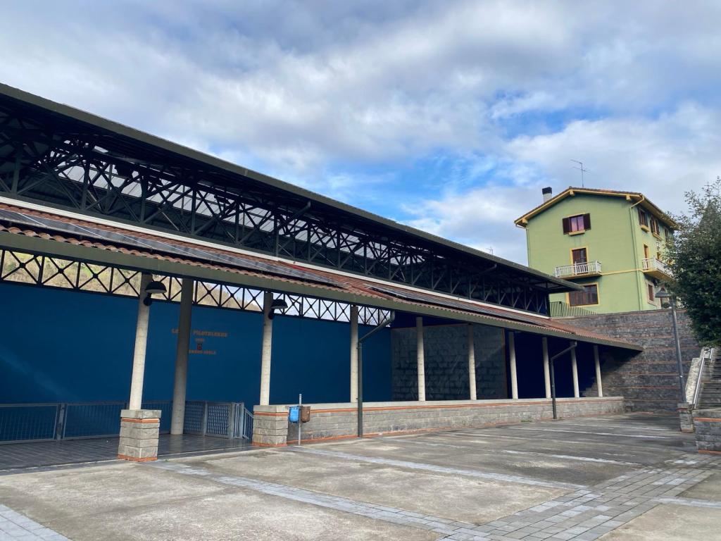 En Alegi tampoco hay sitios abiertos donde comer, por lo que una vez llegados, cogemos el autobús de Lurraldebus y nos vamos a Tolosa, al polideportivo Usabal donde, a pesar de la hora, nos dan de comer.