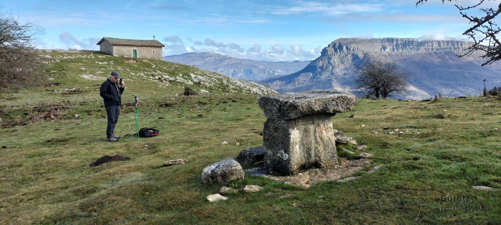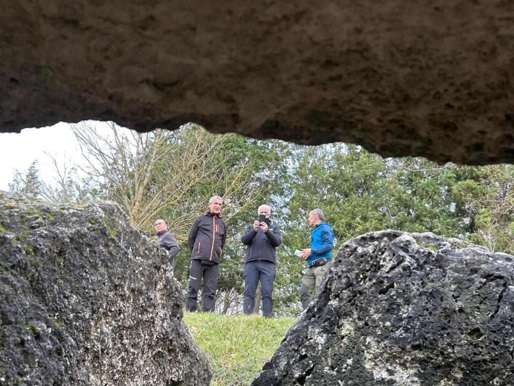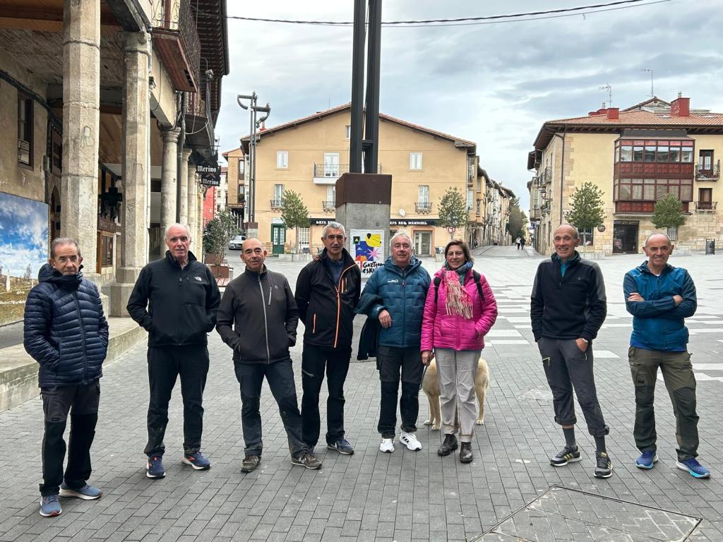 El grupo en una plaza San Juan de Agurain (Foto Fernando)Foto de grupo ante el dolmen de Aizkomendi (Foto Koldo)Vista del dolmen desde arriba. Al fondo los montes Mirutegi y Surbe (Foto Juanjo).Composición artística desde el interior del dolmen (Foto Mikel)
