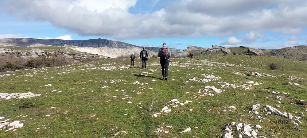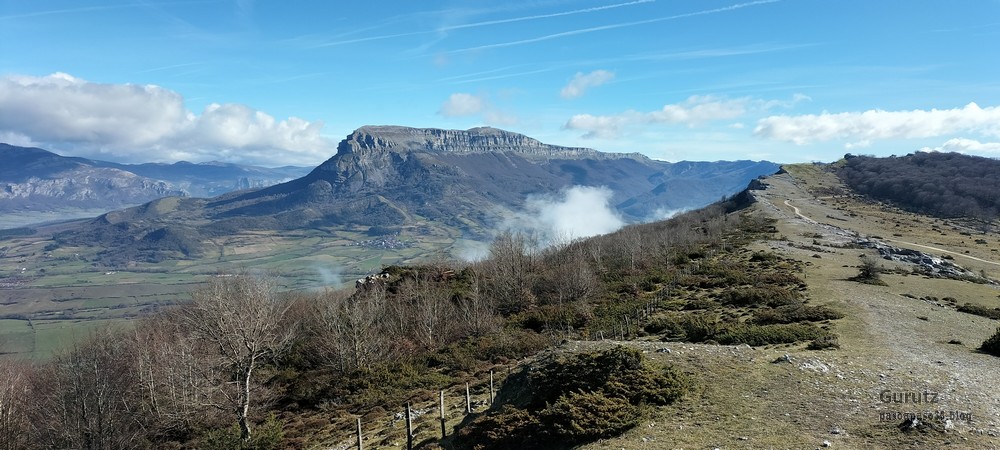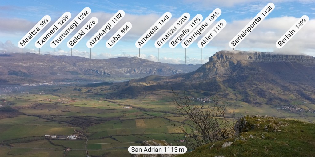 Comenzamos la ruta en el alto de Lizarraga, junto al tunel. Aparcamos junto a la benta, donde luego comeremos.Iniciamos la ascensiónEnseguida nos encontramos con que hay una cantera, la cual tenemos que bordear.Una mirada hacia atrásLlegamos a un collado y la vista es extraordinaria, Berían-San Donato en primer plano sobre los pueblos de Unanu y Torrano, con Aralar al fondo.El grupo posando, alguno con cara de felicidad y otro con cara de resignación.La Sakana