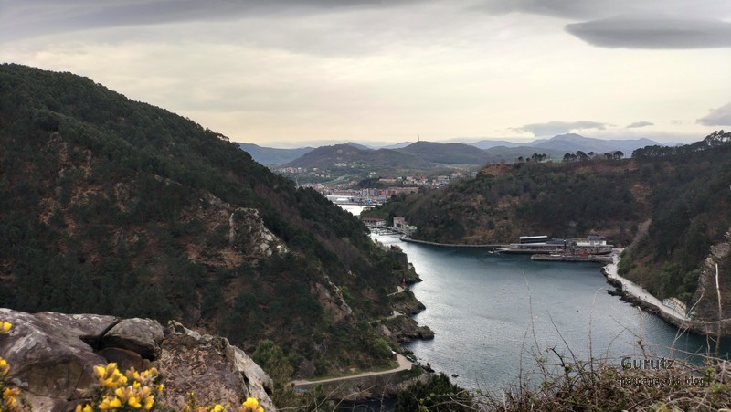 Ya saliendo de Donibane, dirigiéndonos hacia Kalaburtza (Vídeo Juanjo).En Kalaburtza empieza la subida, fuerte subida (Foto Juanjo).Se puede apreciar la empinada cuesta que sube a la linterna de la bocana.Vista de la bahía desde la linterna.Vamos a pasar por debajo de la cresta del gallo.Fernando bajo la cresta.Un ejemplar de asfodelo, también conocido como varilla de San José, gamoncillo o gamón blanco (Asphodelus albus).