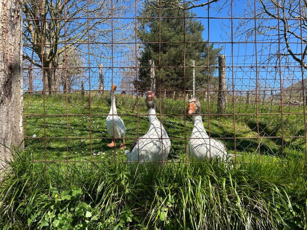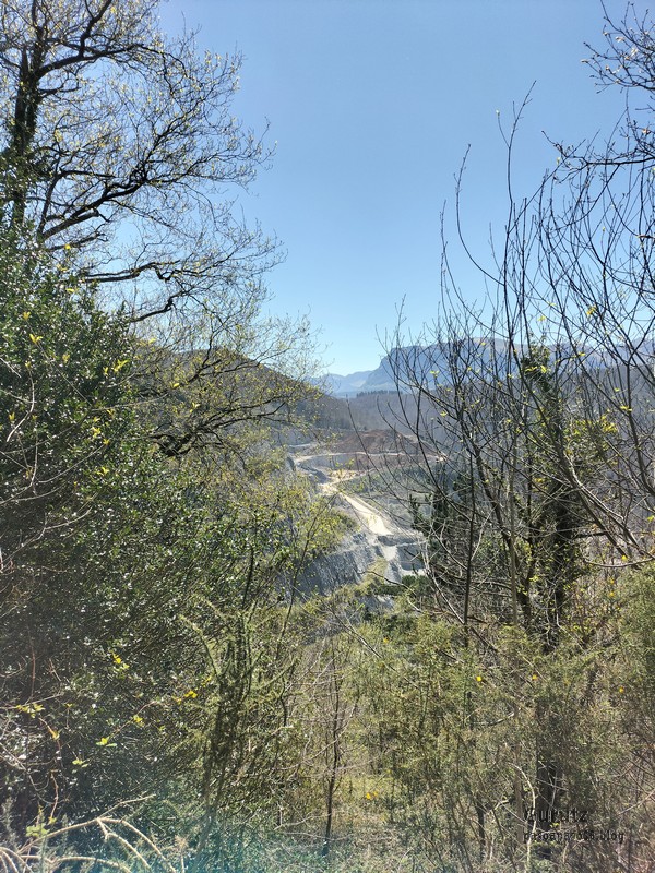 Video de las estupendas vistas que tiene Laparmendi, se ve todo Aralar, Aitzgorri, y el Goierri completo (Video Fernando)Abajo vemos una pequeña parte de la cantera de Altzo, completamente rodeada de un magnífico encinar cantábrico.Y nos vamos hacía abajo. La pendiente es fuerte, como la subida, sin tregua, larga y se termina haciendo monótona.Otra parte de las instalaciones de la cantera (Foto Mikel).Menos mal que hemos dejado atrás el karst. Ahora el camino es cómodo; si no fuera por la pendiente.Una charca para anfibios. No sé si se reproducirán bien allí, ¡pero se tienen que llevar cada susto!, como el que nos llevamos nosotros cuando hicieron una voladura en la cantera.La cantera vista desde otra perspectiva.Ya estamos cerca de Altzo, hace calor, estamos cansados, y estamos pensando en comer o, por lo menos, tomar algo en el ostatu de Altzo. Javier mira en internet y el martes hacen descanso semanal; nos tenemos que conformar con agua de la fuente junto a la parroquia.A nuestro paso estas ocas armaron un buen alboroto; dicen que son los mejores guardianes (Foto Mikel)Pórtico de la iglesia de Altzo.Ayuntamiento de Altzo. Nos quedan dos kilómetros hasta Alegi.