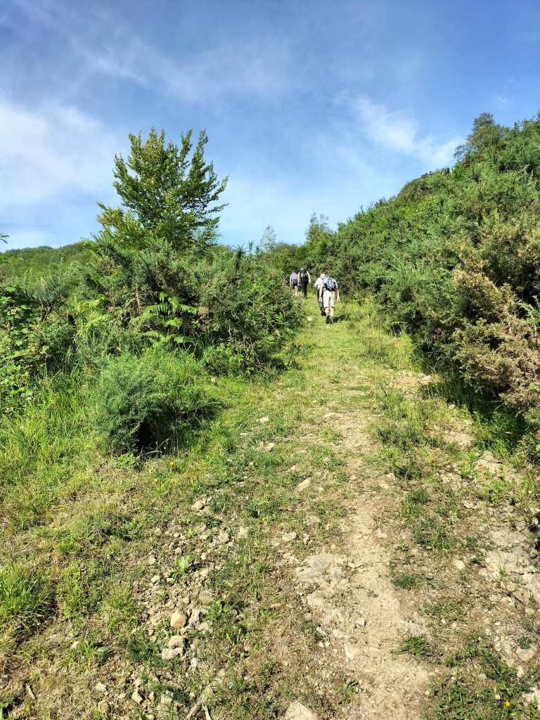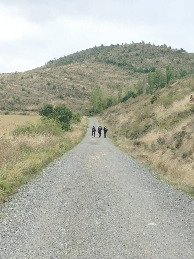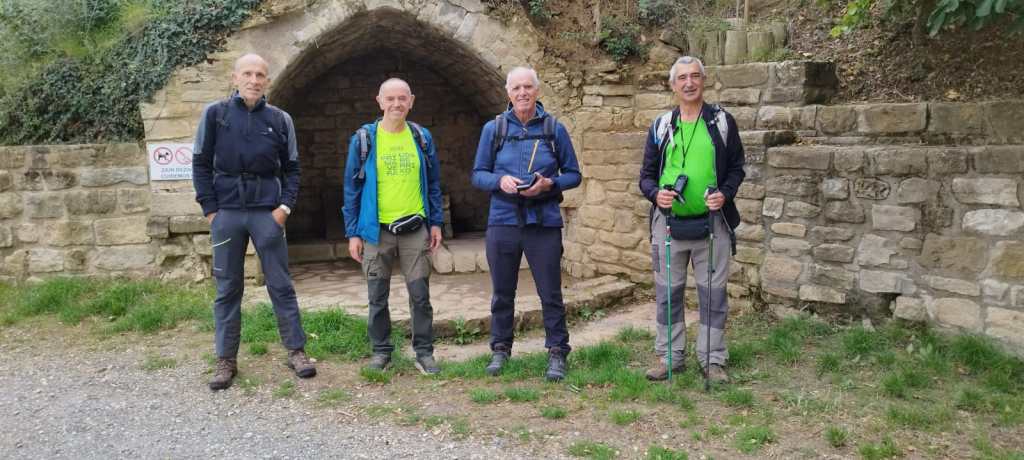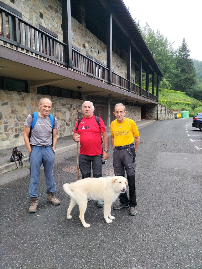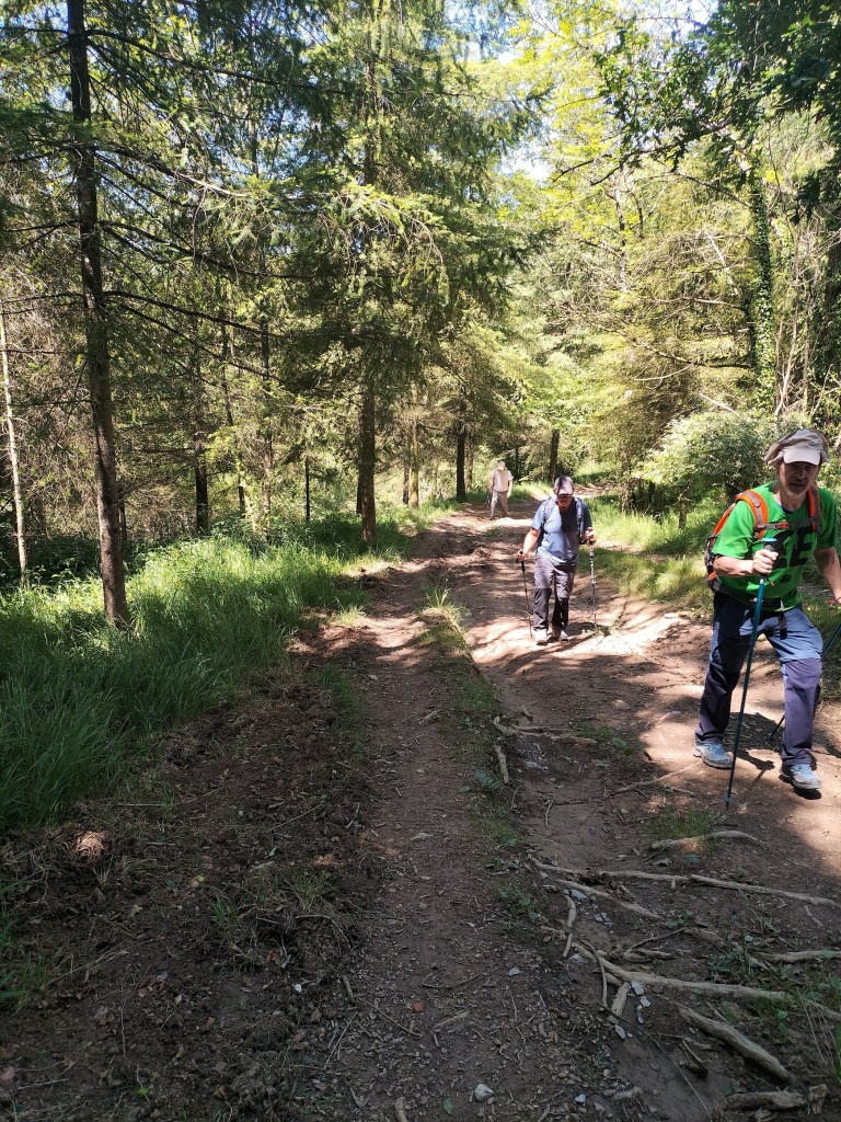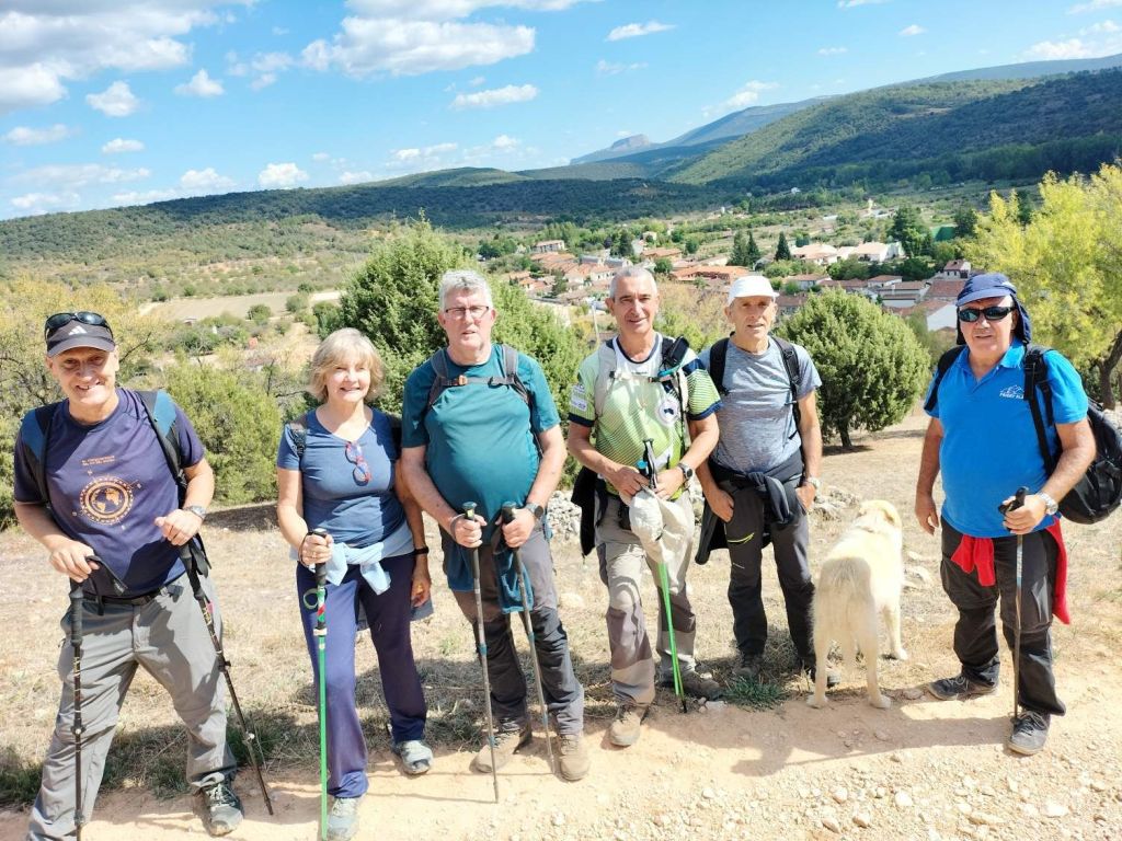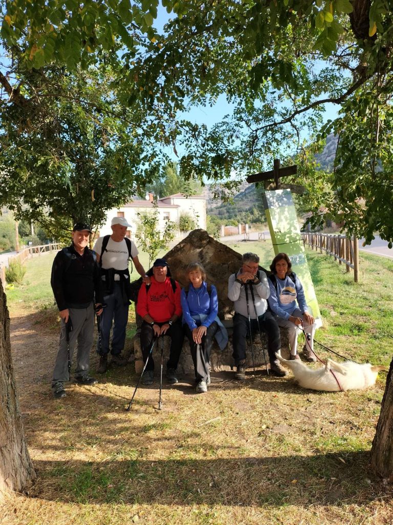 Ruta con un recorrido previsto de 21km y 1.000m de desnivel positivo acumulado. A pesar de que en la subida seguimos un atajo que nos hubiera supuesto recortar el desnivel unos 150m y la distancia en 2,2km, al final, ya en la bajada, nos pasamos un desvío y dimos un gran rodeo, con mucha carretera, que hizo que la etapa fuese de 22,8 km con 820 de desnivel positivo que hicimos en 6:16 horas. Día fresco al principio, agradable para andar, que se convirtió en un mediodía caluroso que nos hizo sudar la gota gorda. Nos juntamos Luis, Javier, Fede, Josean y su mascota Alai, Felipe, y Juan Cruz.