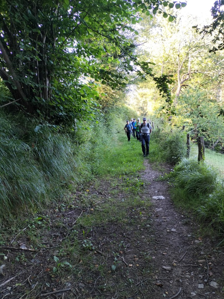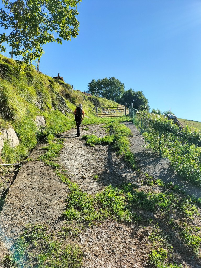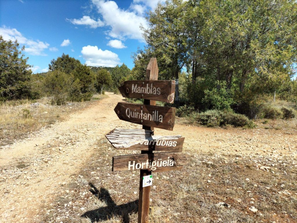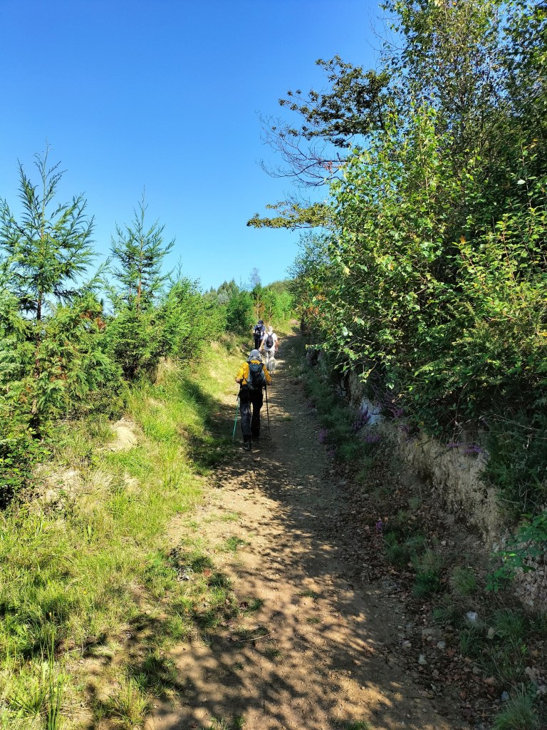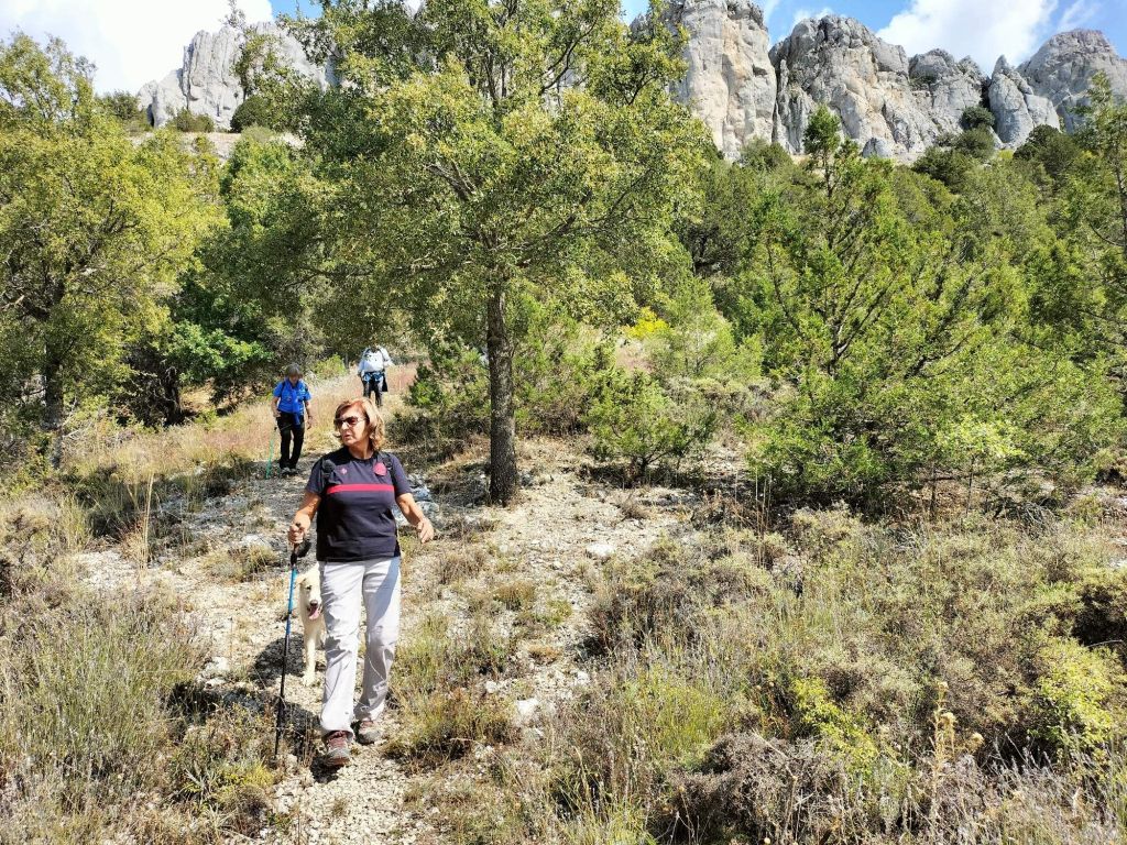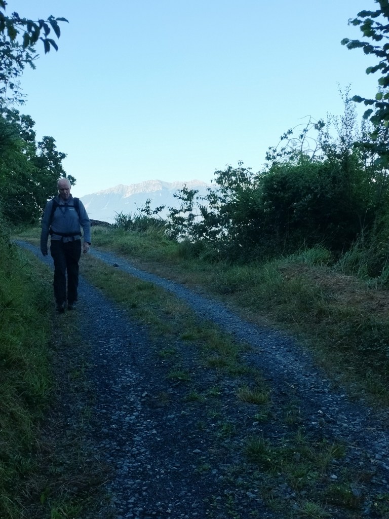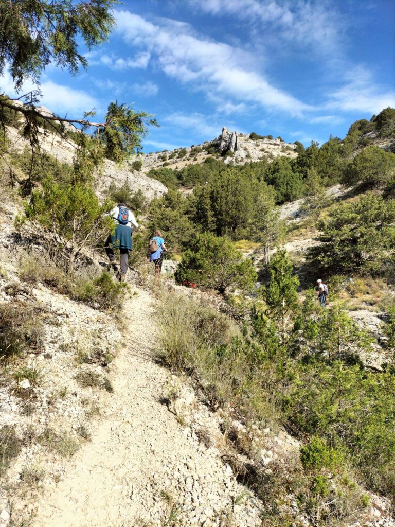 Ruta con un recorrido previsto de 21km y 1.000m de desnivel positivo acumulado. A pesar de que en la subida seguimos un atajo que nos hubiera supuesto recortar el desnivel unos 150m y la distancia en 2,2km, al final, ya en la bajada, nos pasamos un desvío y dimos un gran rodeo, con mucha carretera, que hizo que la etapa fuese de 22,8 km con 820 de desnivel positivo que hicimos en 6:16 horas. Día fresco al principio, agradable para andar, que se convirtió en un mediodía caluroso que nos hizo sudar la gota gorda. Nos juntamos Luis, Javier, Fede, Josean y su mascota Alai, Felipe, y Juan Cruz.