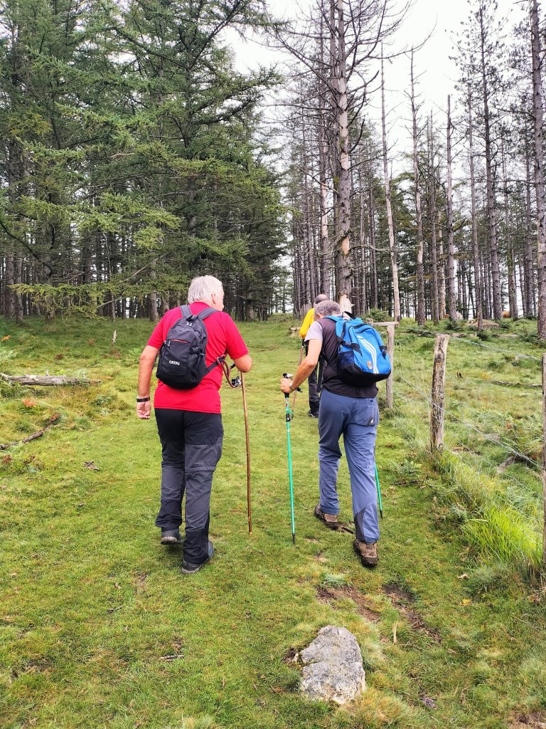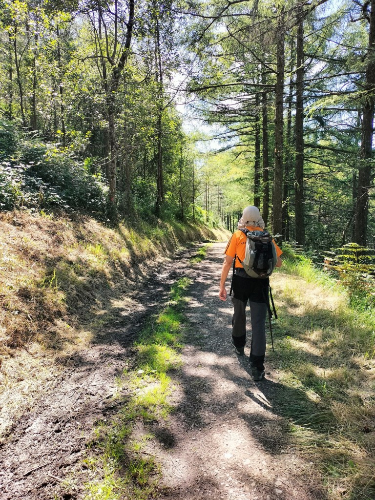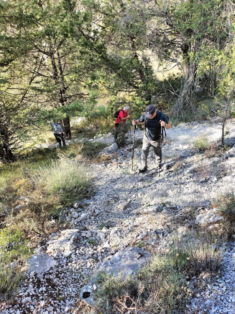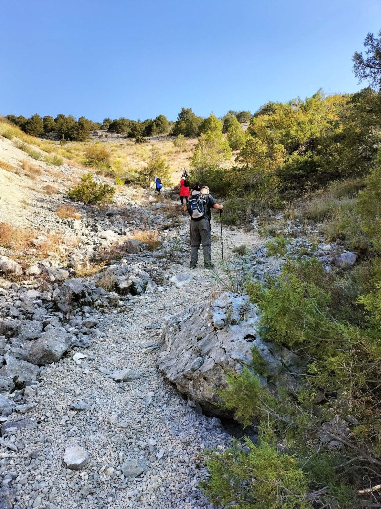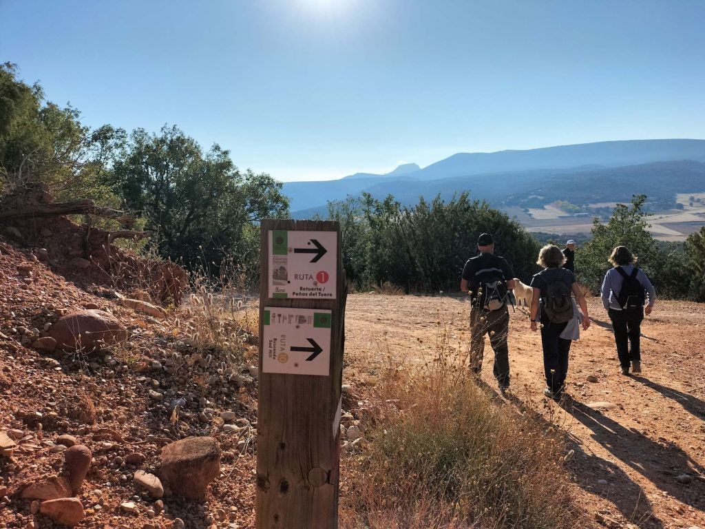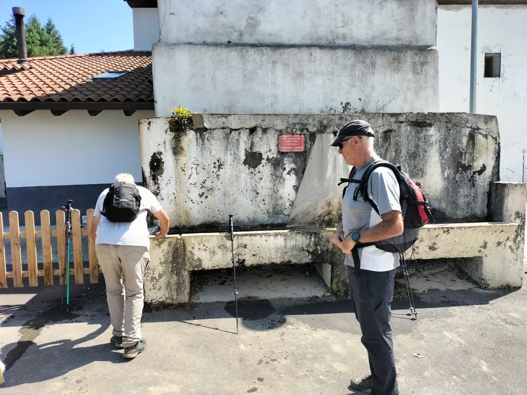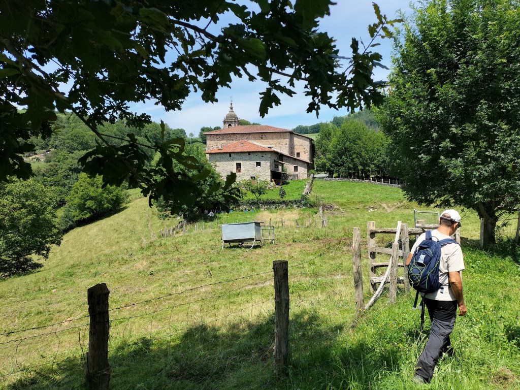 Ruta con un recorrido previsto de 21km y 1.000m de desnivel positivo acumulado. A pesar de que en la subida seguimos un atajo que nos hubiera supuesto recortar el desnivel unos 150m y la distancia en 2,2km, al final, ya en la bajada, nos pasamos un desvío y dimos un gran rodeo, con mucha carretera, que hizo que la etapa fuese de 22,8 km con 820 de desnivel positivo que hicimos en 6:16 horas. Día fresco al principio, agradable para andar, que se convirtió en un mediodía caluroso que nos hizo sudar la gota gorda. Nos juntamos Luis, Javier, Fede, Josean y su mascota Alai, Felipe, y Juan Cruz.