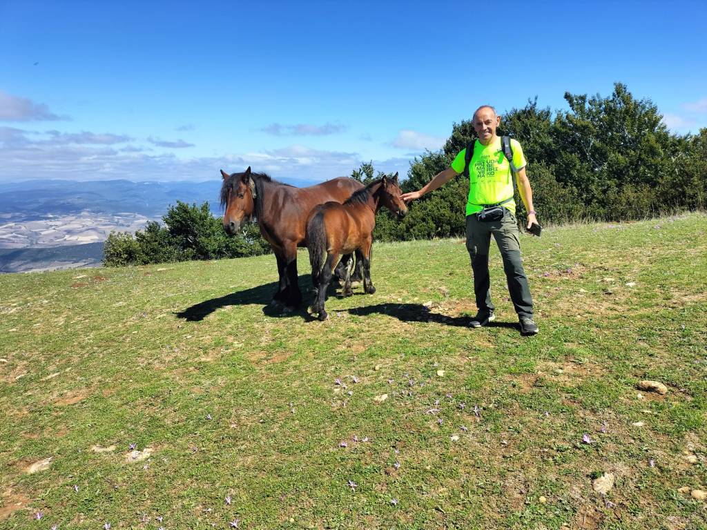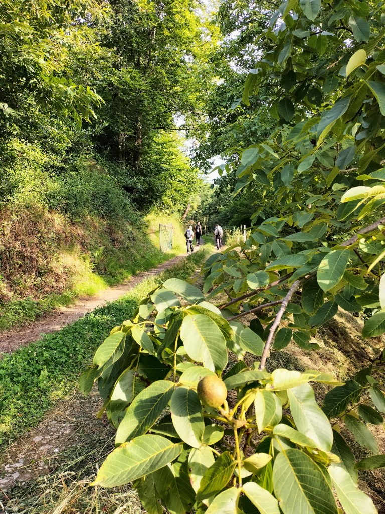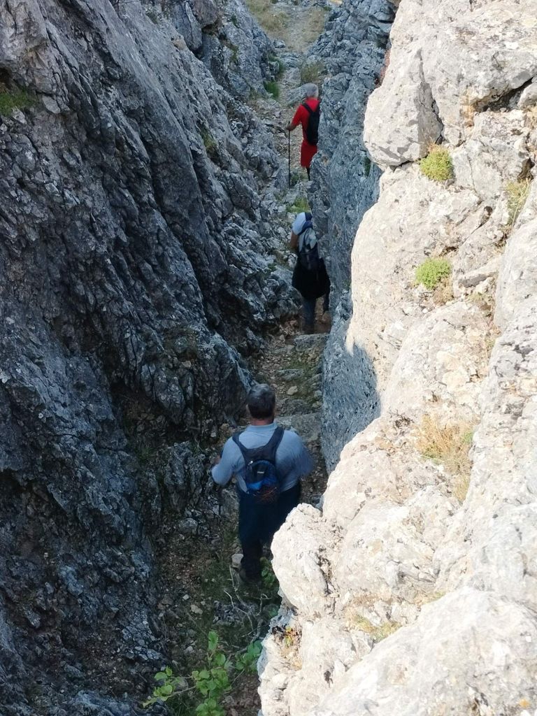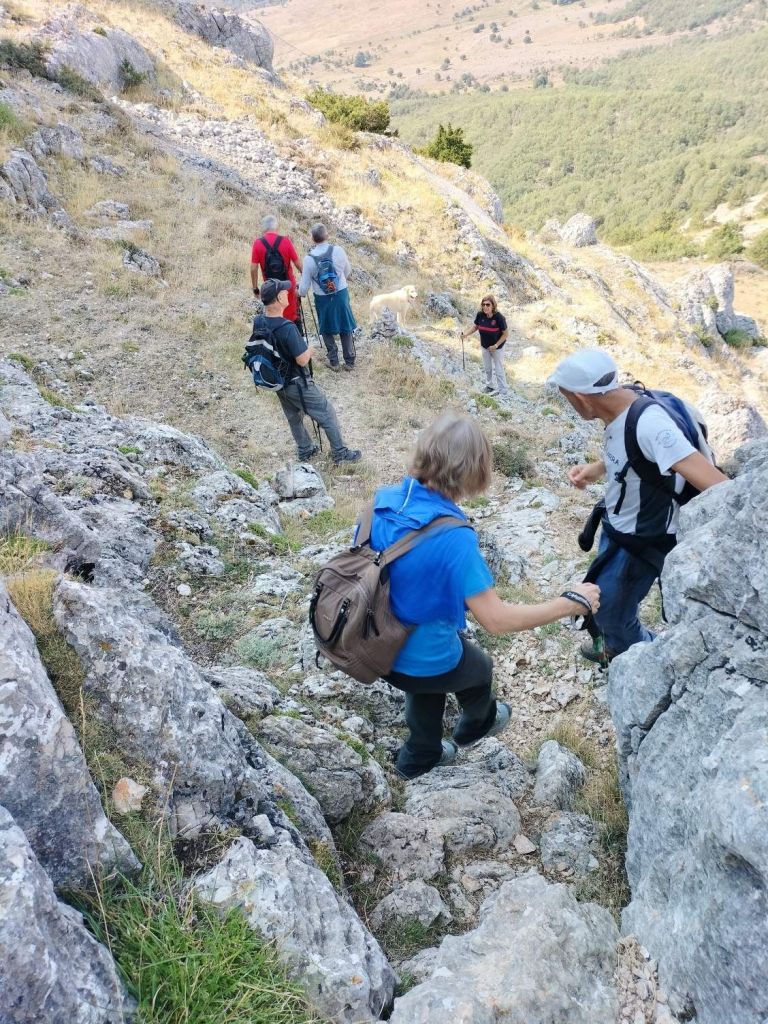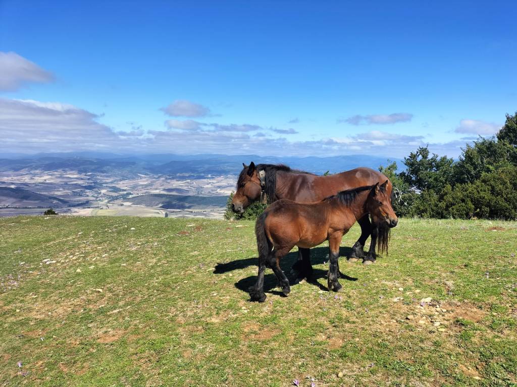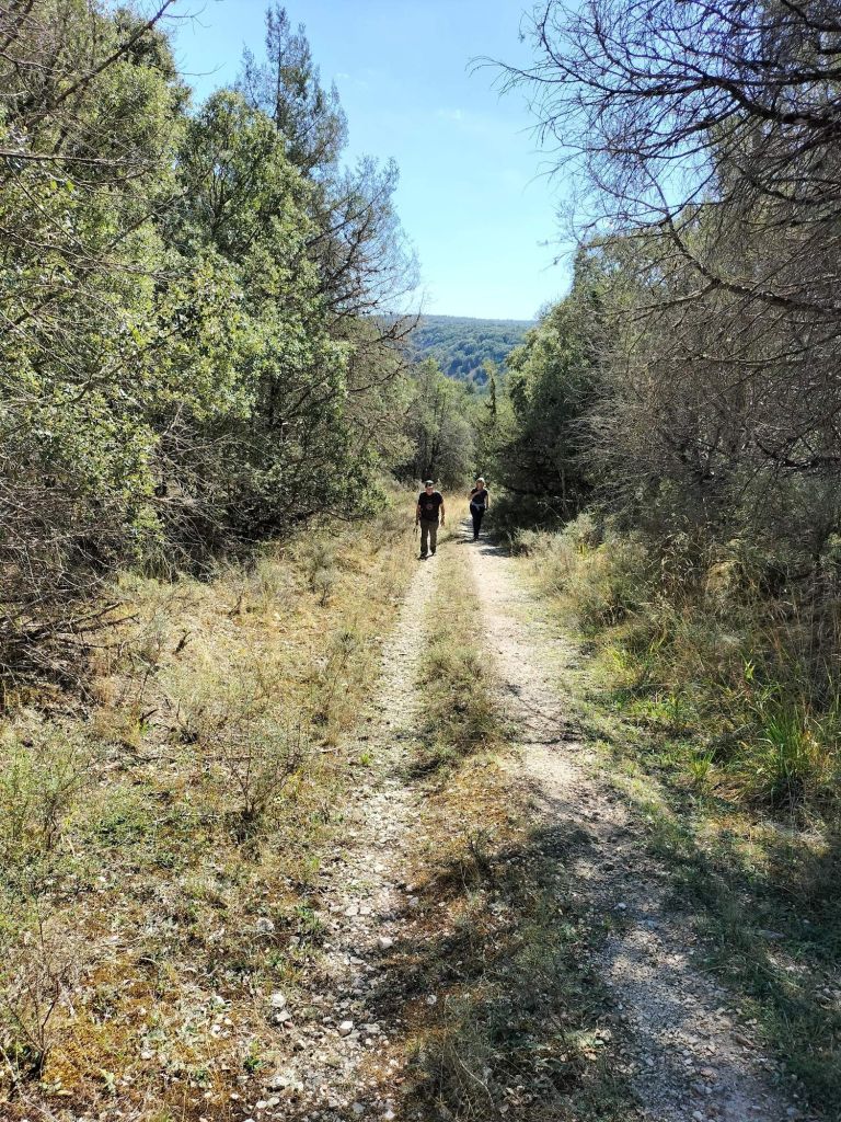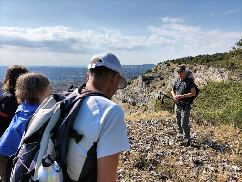 Ruta con un recorrido previsto de 21km y 1.000m de desnivel positivo acumulado. A pesar de que en la subida seguimos un atajo que nos hubiera supuesto recortar el desnivel unos 150m y la distancia en 2,2km, al final, ya en la bajada, nos pasamos un desvío y dimos un gran rodeo, con mucha carretera, que hizo que la etapa fuese de 22,8 km con 820 de desnivel positivo que hicimos en 6:16 horas. Día fresco al principio, agradable para andar, que se convirtió en un mediodía caluroso que nos hizo sudar la gota gorda. Nos juntamos Luis, Javier, Fede, Josean y su mascota Alai, Felipe, y Juan Cruz.