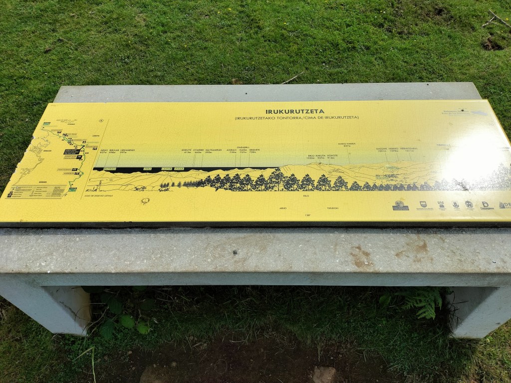 La vuelta de hoy tiene cinco cimas en su recorrido, Kurutzebakar (898m), Irukurutzeta (899), Leiopago (819), Elosumendi (878) y Agerreburu (859). La distancia recorrida han sido 17,7 km (más algunas propinas por despistes), y unos 1.000m de desnivel acumulado positivo, la cual hemos realizado en 5:56 horas, de las cuales 5:08 han sido en movimiento, el resto, almuerzo (frugal), fotos y paraditas para ver por donde tirar.
