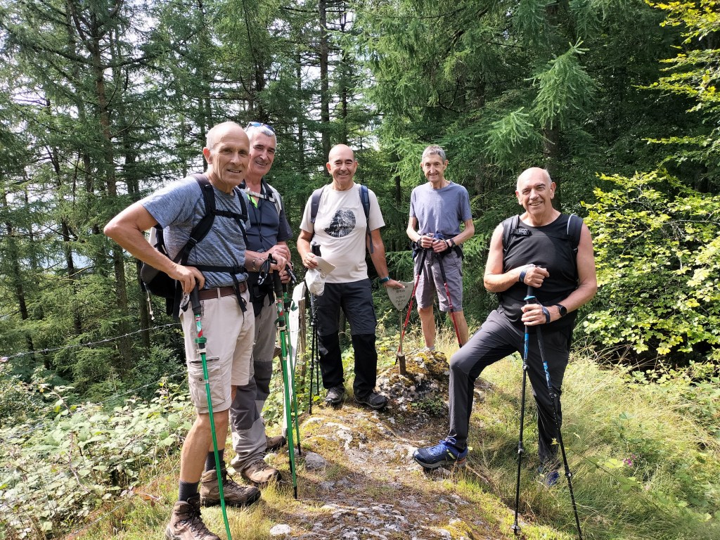 Vamos bajando por un intrincado sendero que culebrea por un bosque mixto de hayas y bojYa vemos Ardanaz cercaFin de ruta, con el objetivo principal a mi espalda.Una vez aseados y cambiados nos vamos a Pamplona para comer en un bar de La Rochapea que conocía Juanjo (Foto Juanjo)