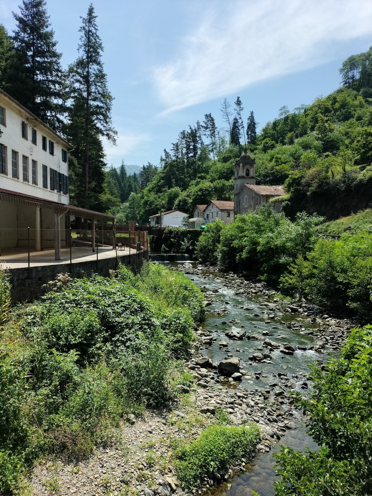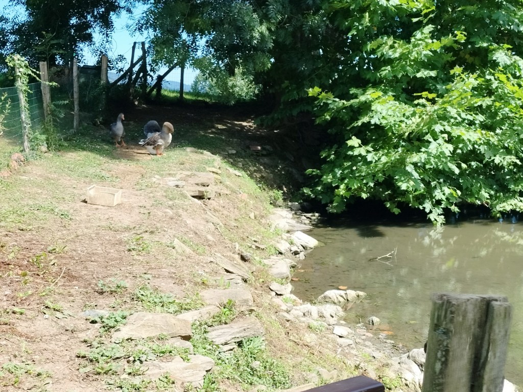 Una vez finalizada la ruta buscamos donde comer; los jatetxes conocidos estaban cerrados o en agosto no daban menús; nos recomendaron el «Orbela», reservamos y allá nos fuimos. Se encuentra junto a la casa de cultura y nos atendieron fenomenal; la comida buena, rápidamente servida, la atención muy buena con una camarera eficaz y muy simpática, de 10. Una vez comido, tomado café y algún refresco, nos vamos a casa cansados pero sartifechos.