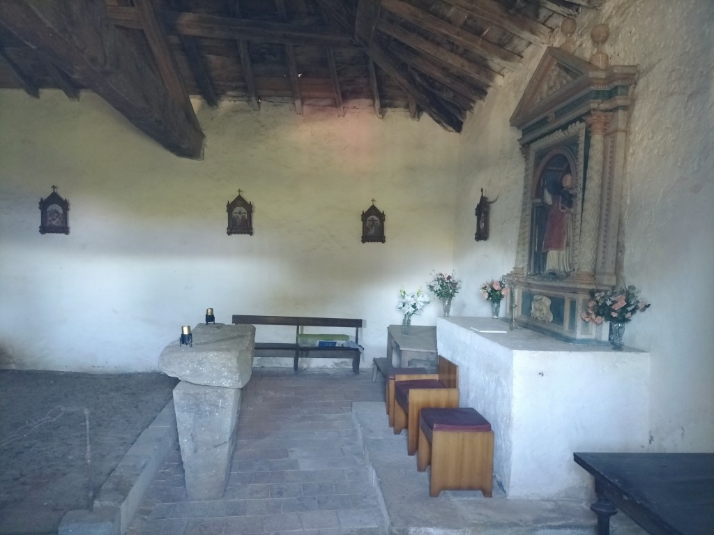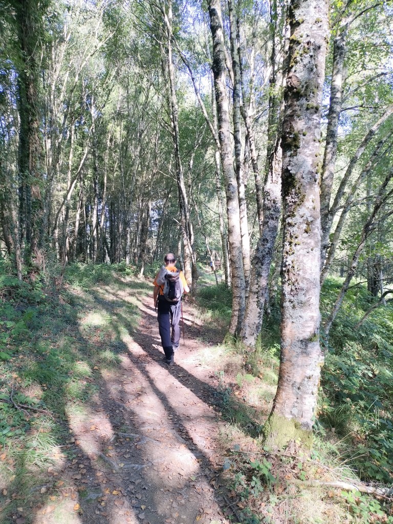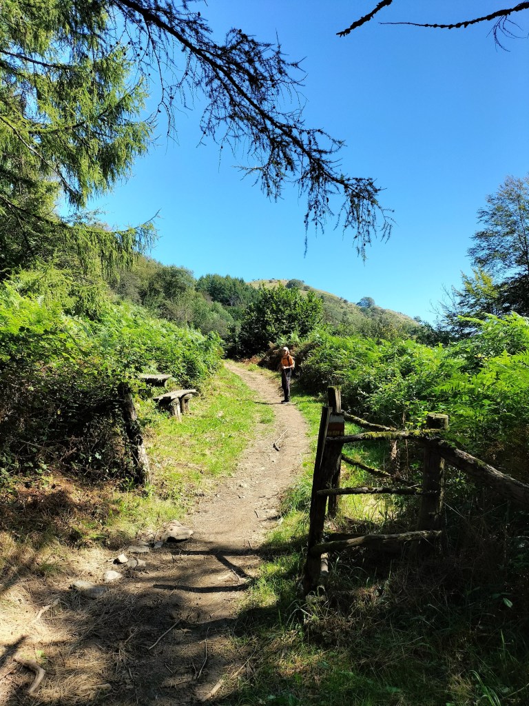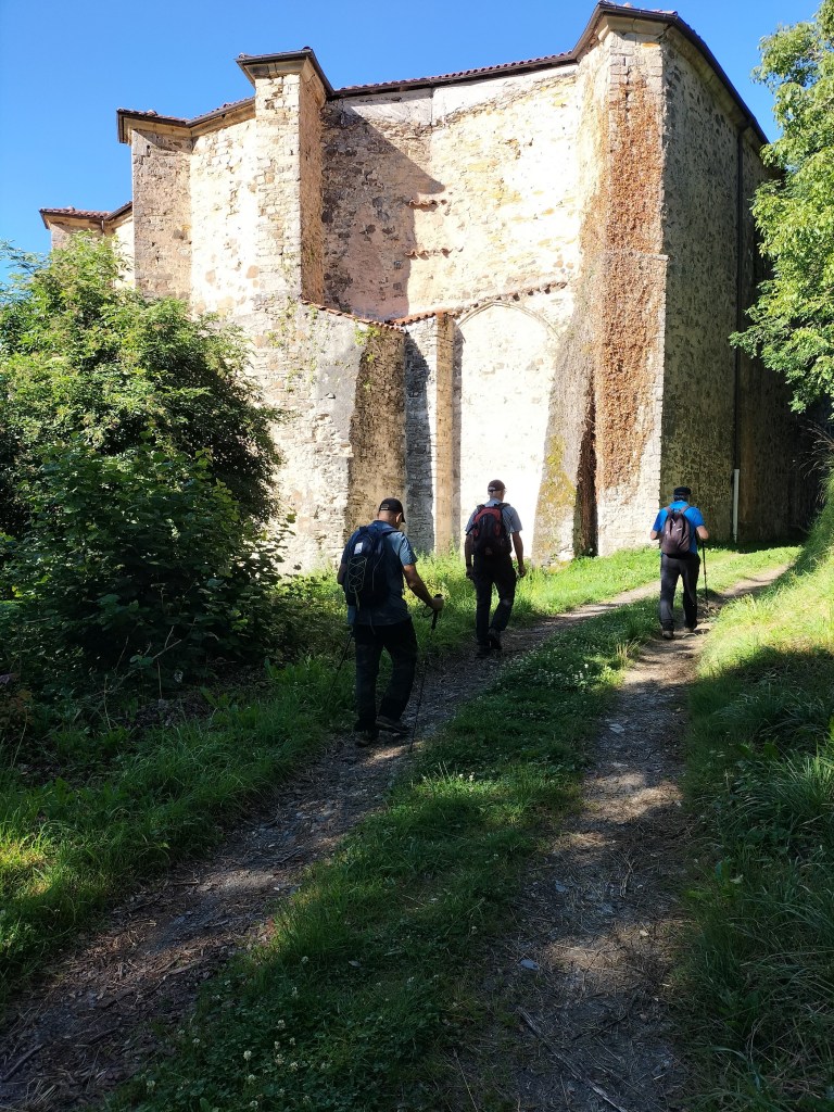 Hoy teníamos planeada una etapa de 19,2km con unos 441m de desnivel positivo, que esperamos hacer en algo menos de 5:00 horas pero, por un error al elegir un camino, al final hacemos un recorrido de 21,6km, con un desnivel positivo de 568m en el que hemos empleado 6:31 horas. Mencionar que hemos estado parados 2 horas ( visita al monasterio, a la ermita de san Pelayo, etc.) Por lo que la velocidad media en movimiento ha sido de 4,9 km/h, y eso que desde el monasterio hasta casi el final de la etapa había unas duras cuestas que nos han hecho sufrir. Buena temperatura para andar excepto al final, momento en que el sol daba de lo lindo.