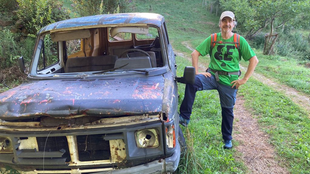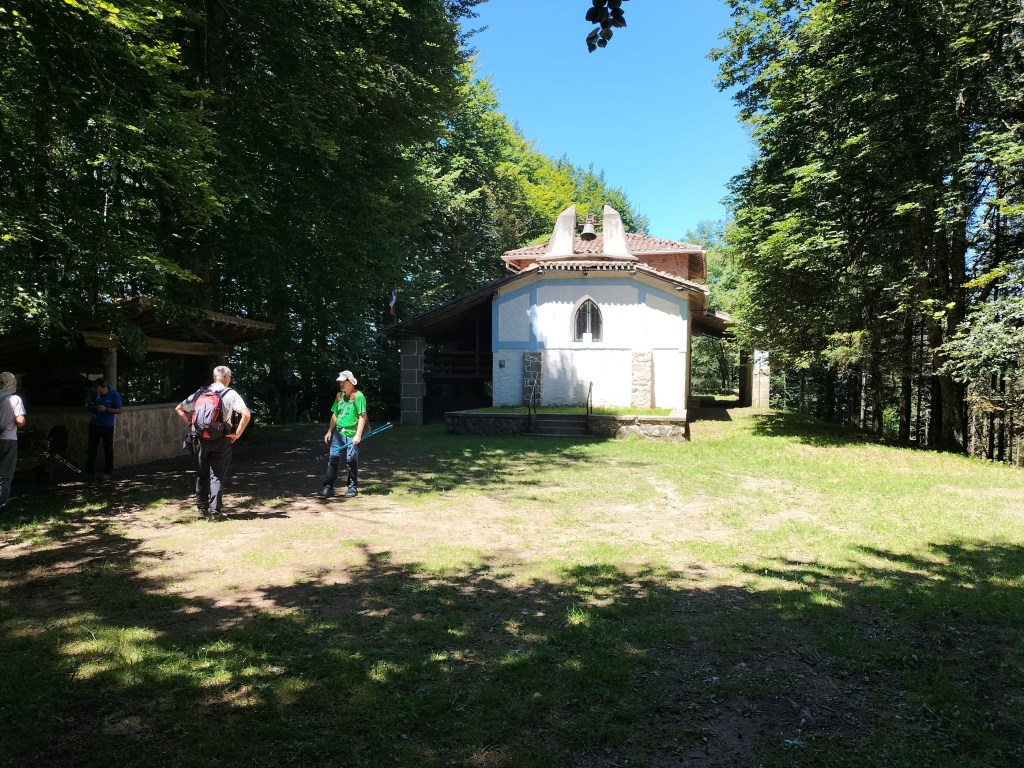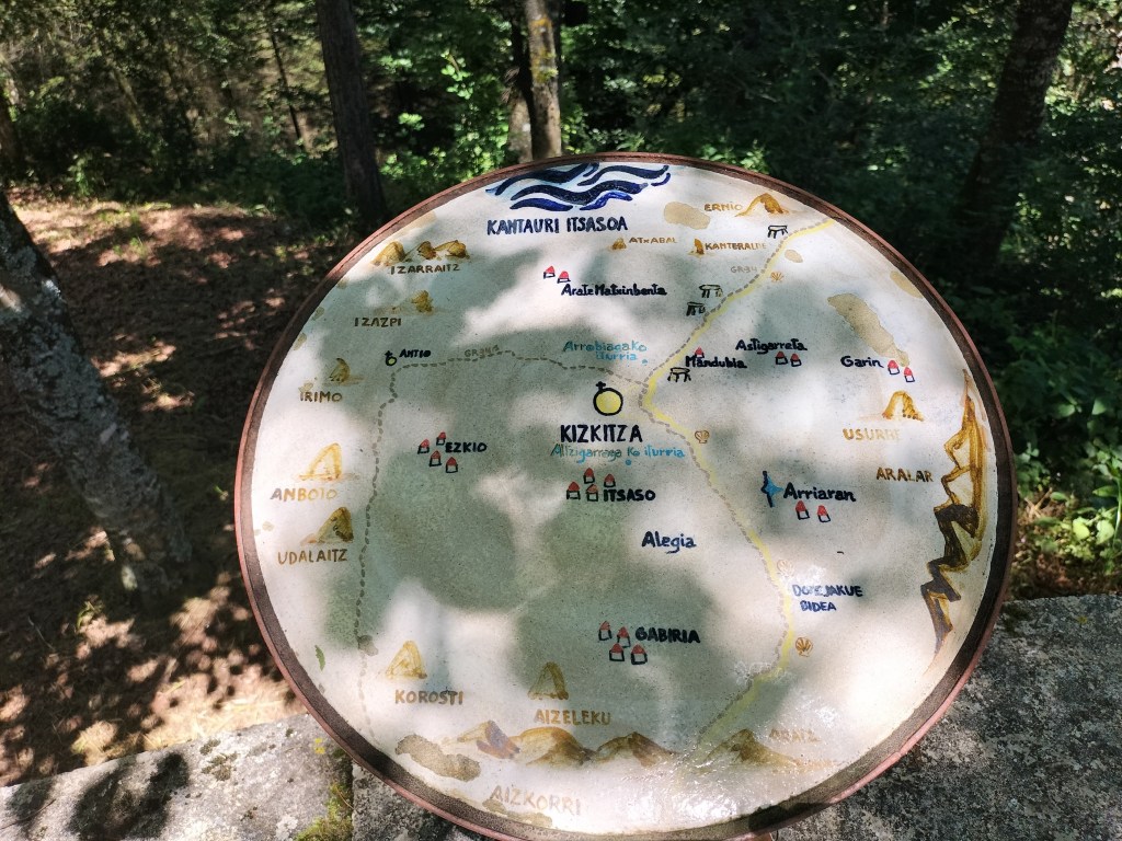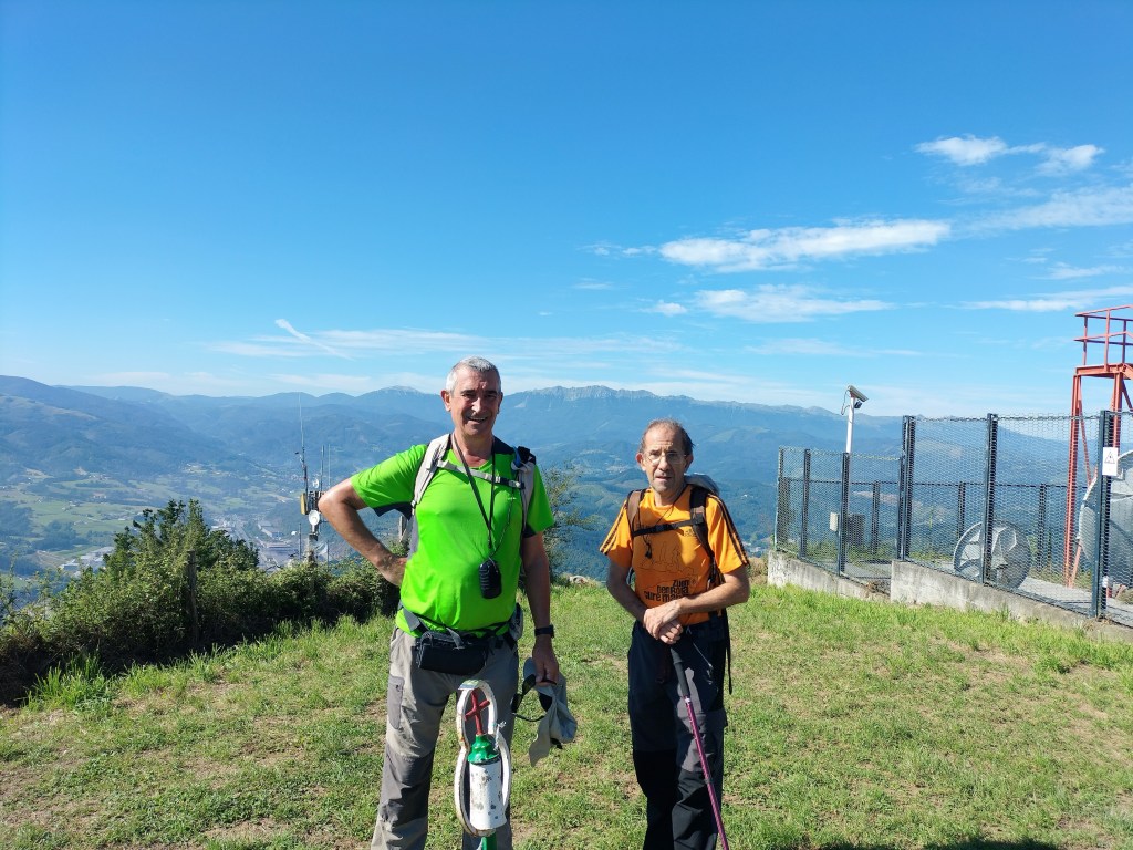 El equipo expedicionario a punto de salir. Fernando, Emilio, Fede, Kepa y Koldo.Comenzamos a andar en dirección a Ezkio por una buena pista sin apenas desnivel. Las vistas hacia Aratz-Aizkorri son fantásticas.Disfrutando de las vistas mientras caminamos; el tiempo es extraordinario, fresco al principio, sin una sola nube, aunque hay algo de bruma.Vista hacia Aratz-AizkorriErmita de San LorenzoInterior de la ermita desde una ventana lateralEn el exterior de la ermita había un parquecito infantil. Al fondo, Irimo (Foto Fernando)Seguimos caminando por terreno cómodoY nos encontramos una sorpresa, una furgoneta abandonada y destartalada.Ya vemos Ezkio, estamos cerca del núcleo urbano.Entramos en Ezkio por la parte trasera de la Iglesia de San MiguelPortada de la iglesia, de estilo gótico, construida en el siglo XIV. En la localidad de Ezkioga en el año 1931 se produjeron unas apariciones de la virgen de la Dolorosa, lo que provocó un fenómeno de masas que hizo que en ese mismo año visitasen la localidad más de un millón de personas.Vamos bien, ya nos falta poco para Izazpi, el primer objetivo del día, pero lo que falta … telaEmilio junto al pozo de los deseos sin saber qué pedir; ya tiene salud, dinero y amor, así que sólo pide pasar un buen día.Ermita de Santa Marina A partir de aquí empiezan las cuestasLlegamos a una zona donde han talado pinos, algunos de un diámetro considerable (Foto Emilio)El grupo posando junto a los pinos preparados para ser cargados y transportados en camión (Foto Emilio)Ya vemos la cruz de Izazpi, ahora viene la parte más dura de la ruta, es solo un kilometro, pero qué kilómetro. Subiremos por el camino que se ve paralelo a los pinos que tiene una pendiente considerable. Son unos 250m de desnivel en 1 km, así que calculad el porcentaje (Foto Emilio)Una paradita para coger aire Ya vemos la cruz lo cual nos anima para seguir subiendoUltimos metros, ¡uf, lo que ha costado!Buzón de Izazpi, al fondo Aralar y mas cerca Murumendi y la Venta de MandubiaFoto del grupo en la cima. Desde la misma hay unas vistas ESPECTACULARES hacia los cuatro puntos cardinales, destacando Aralar, Aizkorri-Aratz. Izarraitz, Erlo y Ernio. En mi opinión es el monte con mejores vistas de Gizpuzkoa.Volvemos a pasar por la zona de troncos amontonados.Ya nos queda poco para la siguiente cima, Beotegi de la cual no hay documento gráfico porque estaba invadida de maleza y era imposible avanzar.Llegados al cruce para ir a Kizkitza o a la Venta de Mandubia alguno, medio en broma, sugirió cambiar el recorrido e ir a Mandubia a comer porque dan muy bien de comer; la propuesta fue desestimada ya que teníamos reservada mesa en el ostatu de Itsaso y, además, suponía alargar la ruta. No nos arrepentimos de la decisión porque en el ostatu nos dieron de comer bien y abundante y pasamos un rato de sobremesa muy agradable.Vamos subiendo hacía Kizkitza por entre pinos y hayas.Ya tenemos la ermita a la vista, un último repecho y se acaban las cuestas hacia arribaUna mesa de orientación a la que no veo mucho sentido actualmente ya que la cima y la ermita están rodeadas de hayas que impiden las vistas hacia todos los lados.Puerta principal de la ermitaZona de esparcimiento con mesas y bancos de madera, incluso había una barra de bar que no sabemos cuando estará abierta, nos hubiera venido bien.Campa ante la ermita y a la izquierda se puede apreciar la barra de bar. A partir de aquí todo para abajo hasta ItsasoLLegamos a Itsaso, nos aseamos en una fuente con agua abundante y fresquita que está junto a la iglesia y como está cerrada nos vamos al ostatu a comer.