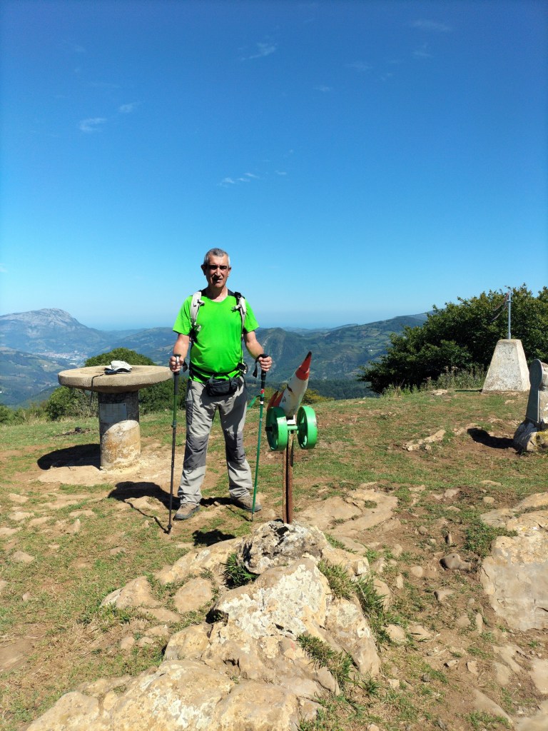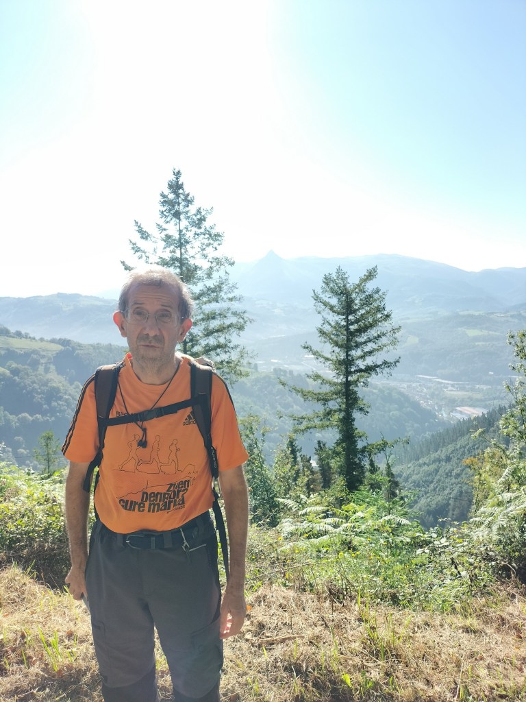 Inicio de la ruta, estación de FFCC de BeasainÁrea recreativa con fuente, mesas y bancosYa vemos nuestro primer objetivo, Usurbe, solo tenemos que salvar 550m de desnivel para esa primera cima.Un selfie de los integrantes de la expedición.Javier posando con Aralar detrás. Hacia ese lado había como neblina, hacía Aitzkorri estaba más despejado.Ya tenemos cerca el caserío que da nombre al monte, o ¿es al revés?Ultimas rampas, ya saliendo del caserío UsurbeTenemos a la vista Murumendi, el segundo objetivo del día.Vértice geodésico de Usurbe.Posando junto al buzón con Aizkorri al fondo.Iniciamos el descenso por un bosque de abedules.Ya cerca de la cima de Murumendi, junto a una mesa y banco que nos servirán para almorzar a la vuelta. A un centenar de metros está …la fuente de Arrapaitza con un hilito de agua (No tratada)Cruce de caminos del GR, el camino de Santiago y la subida a Murumendi.Caballos buscando sombra, con Aralar al fondoCima de Murumendi, con su buzón, vértice geodésico, mesa de orientación y cruces funerariasYo posando en la cima con el buzón, la mesa de orientación e Izarraitz y Azpeitia al fondo. Cuando el otro día estuvimos en Izaspi afirmé que ese monte tenía una de las mejores vistas de todo Gipuzkoa hacía los cuatro puntos cardinales, pues Murumendi no se queda atrás.Me he entretenido haciendo fotos y este se pira para abajo. Al fondo AitzkorriBajando por cómoda pista que discurre por un bosque de alerces.Desde una zona en la que han cortado los pinos podemos ver MurumendiVamos bien, ya solo nos quedan 4km, menos de una hora. Ya tenemos hambre y sed.Al lado del caserío Idoiaga hay un estanque con gansos.Ordiziarra, Ordizia, Txindoki y Aralar, por ese orden, de más cerca a más lejos.