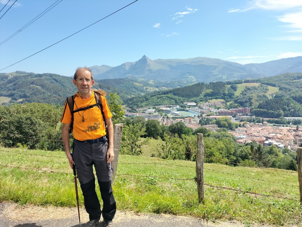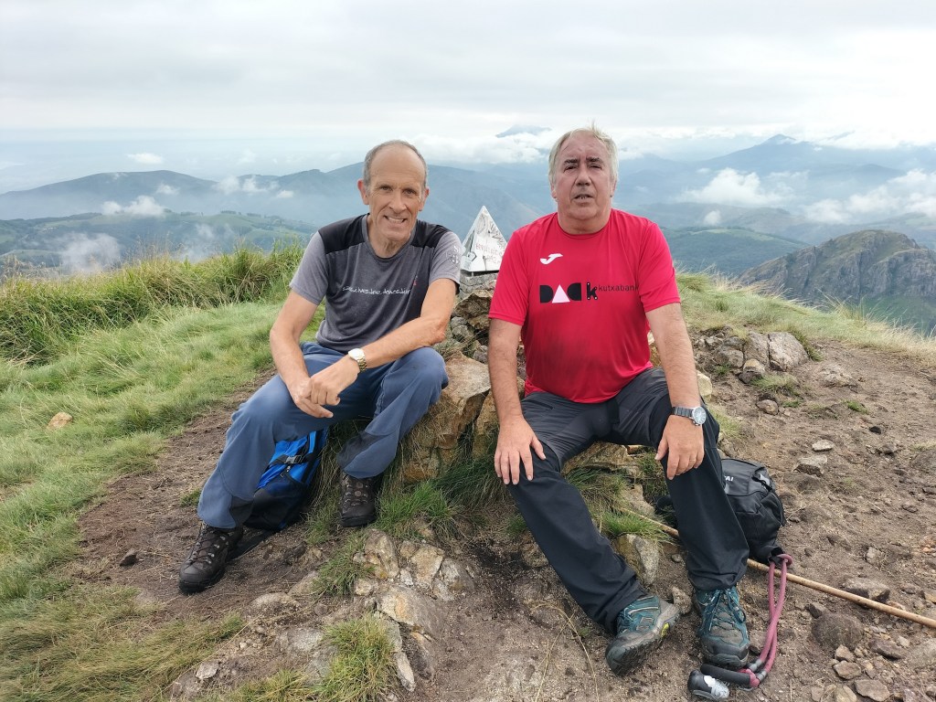 Hoy nos juntamos sólo 2 personas, Javier y yo, para hacer una ruta conocida en su mayor parte. Hemos ido en tren a Beasain (30´de retraso; en fin, todo sea por las obras de mejora) y de allí hemos subido primero a Ursurbe (703) y después a Murumendi (864). Una ruta de 15,1 km, con un desnivel acumulado positivo de 825m, para la que hemos empleado 4:45 horas. Durante la espera de media hora en la estación hemos pasado un poco de frio; después, ya en la subida, ha ido aumentando la temperatura hasta alcanzar al final cerca de los 30º; a veces soplaba brisa que aliviaba el calor, aun así hemos sudado mucho. Todo el camino es cómodo para andar, la mayor parte por pistas y caminos anchos sin dificultad reseñable aparte del desnivel.
