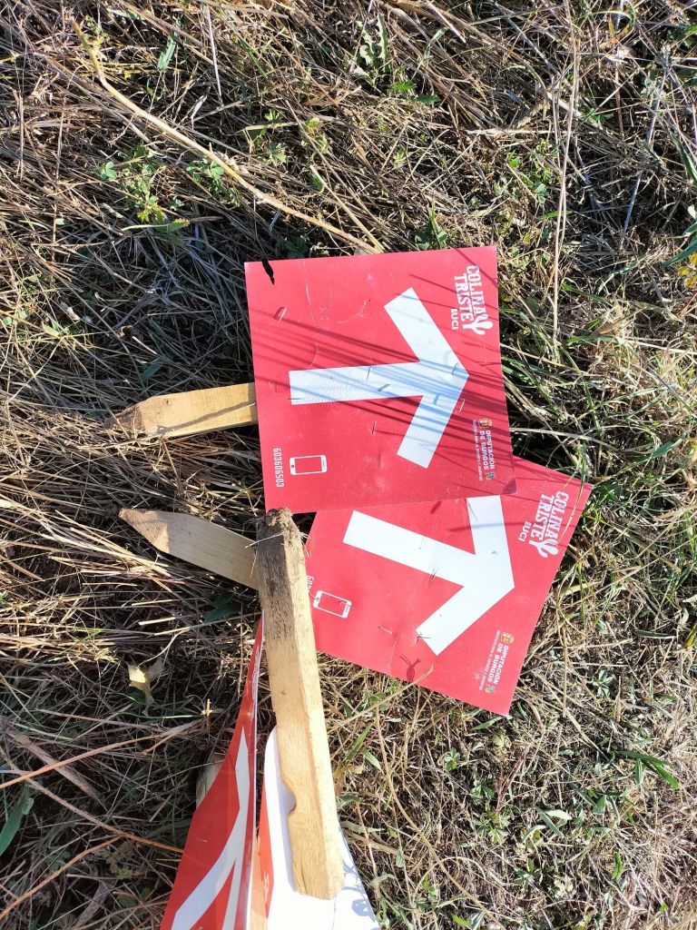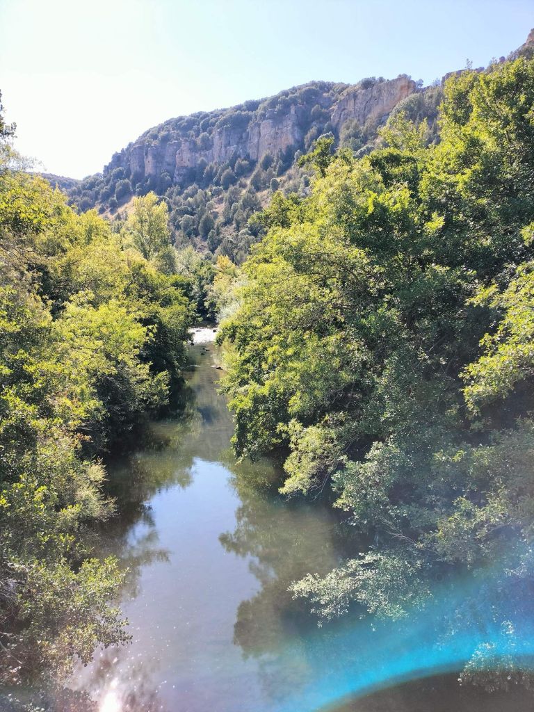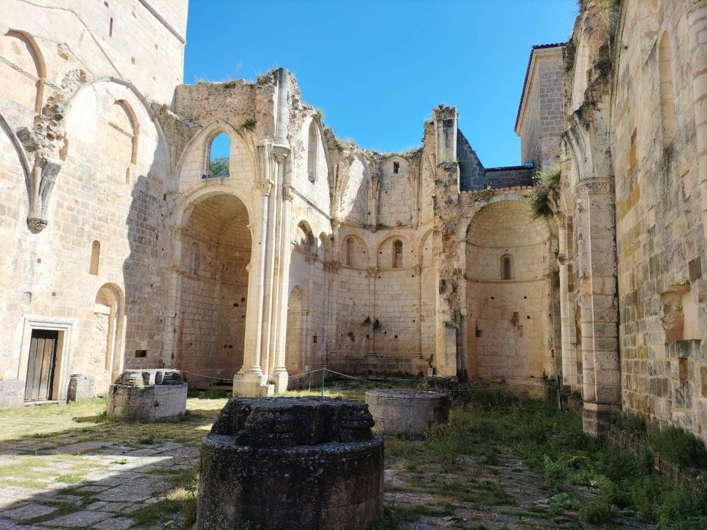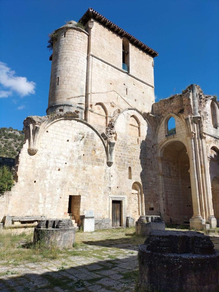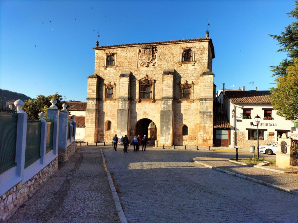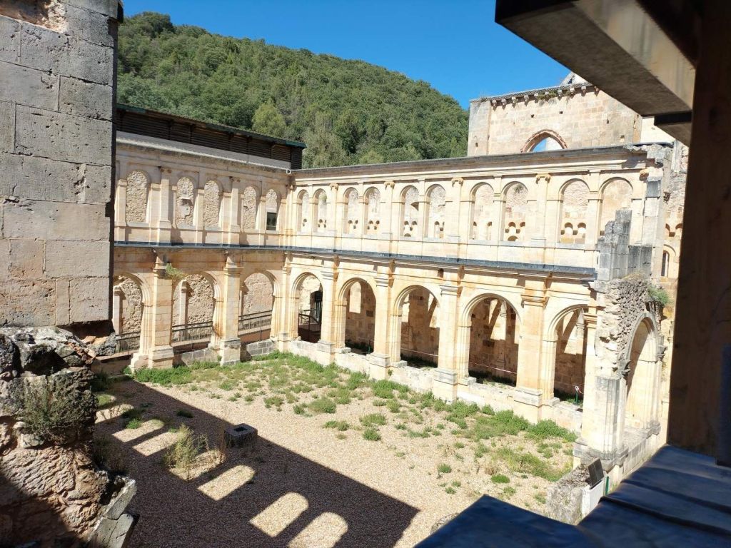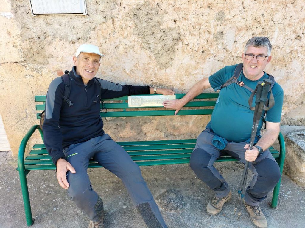 Inicio de la etapa, entrando al núcleo histórico de Covarrubias.Al poco de iniciar la marcha pasamos junto a una plantación de vides. La denominación de origen del vino de la zona es «Ribera del Arlanza» (rasposillo). Al principio el camino va cuesta arriba hasta llegar a …… Un alto que nos da vista a otro valle, donde está Retuerta. Al fondo se ve Peña Carazo, nuestro objetivo de mañana.Vista del valle donde está Retuerta y por donde discurre el río Arlanza.Ya vamos bajando hacia Retuerta. En la foto «el bueno, el feo y el malo», protagonistas de la celebre película de Sergio Leone. Adivinad que papel hace cada uno de ellos.A la entrada de Retuerta nos sorprende el estado de algunas casas.Pero nosotros seguimos adelante.Pareja de jubilados de la Muni disfrutando de un banco patrocinado por la !Caja de Ahorros Municipal!.A la salida de Retuerta seguimos un camino paralelo al río que se ve que ha servido para la prueba de ciclismo «Colina triste». En esta zona todo va de «Sad Hill», celebre cementerio de la película «El bueno, el feo y el malo». Habéis adivinado quien hace cada papel?, a qué estáis esperando!Seguimos por una senda que va al borde del río.Por aquí pasan varias rutas. Esta no es la nuestra.Fernando admirando está curiosa formación rocosa.Seguimos por el borde del río por una chopera. Poco después nos metemos en un marrón por no haber seguido el track y haber ido por la carretera.Río ArlanzaDesvío hacia la ermita de San PelayoErmita de San Pelayo. Más información en https://www.turismocastillayleon.com/es/patrimonio-cultura/iglesias-ermitas/ermita-san-pelayoVista del monasterio desde la ermitaVista había el rio Arlanza desde la ermitaDe repente nos ha aparecido en una ventana el guardián de la ermita. Menos mal que nos ha dejado marchar sin castigarnos por haber perturbado su descanso.Entrada al monasterio de San Pedro de Arlanza. Siglo X. Más información en https://es.wikipedia.org/wiki/Monasterio_de_San_Pedro_de_ArlanzaUno de sus claustrosZona de la iglesia, parcialmente derruidaVista del ábside de la iglesiaOtro claustroY a la salida del monasterio nos equivocamos al elegir el camino y seguimos uno que añade algo más de 2 km al recorrido y unos 120m de desnivel positivo. Lo peor no son la distancia, ni el desnivel añadido, ni tan siquiera el calor que ya calienta fuerte, sino el seguir adelante sin saber si en cada cruce elegíamos el camino correcto para llegar a donde queríamos ir.Aún así disfrutamos de la experiencia, atravesando un profundo y bonito valleCon curiosas formaciones rocosasDe vez en cuando el camino se empinaba mucho.Hasta que por fin llegamos a un punto en el que conectamos con la ruta prevista.A partir de ahí todo será coser y cantar; lo de cantar no es una frase hecha, con tanto corista!Por aquí también pasa el «Camino de San Olav» . Más información en https://caminodesanolav.es/es/contenido/?idsec=577Ya todo hacia abajoUna plantación de lavanda. Una pena que ya la hubiesen recolectado. Al fondo la Peña Carazo.Ya tenemos Covarrubias a la vista.Una foto del equipo casi completoLa misma foto con el miembro que faltaba.