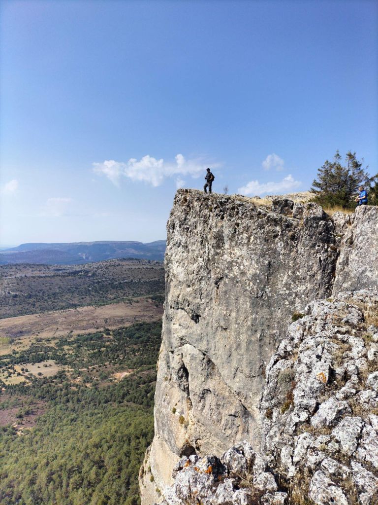 Iniciamos la ascensión subiendo por la carretera durante 1 kmVemos varios letreros con prohibición de coger setas y trufas. Mecachis! hoy que traíamos perro trufero.Ya por pista de tierra vemos nuestro objetivo.Foto de grupo con Castillejo al fondo.Castillejo cada vez más cerca.Ermita de Ntra. Sra. de las Mamblas.A partir de la ermita el camino se estrechaY se empina. Ya estamos cerca.Llegando vemos que en la cima hay tres cabrasEstás no!!!. Reyes y Josebe en la cima de Castillejo, al fondo La MuelaEstás si!!!. Ni Alai ha sido capaz de asustarles ladrandoles, eran muy descaradas.Foto de grupo en la cima de Castillejo.OtraEl cazador cazado. La cria de la cabra se mantiene en el borde del precipicio y Josean le saca una foto.Vamos bajando, primero por un camino empinado y con mucha piedra suelta, y después por una cómoda pista.Por aquí pasa el camino del Cid. Más información en https://www.caminodelcid.org/Ya estamos cerca de CovarrubiasCartel en CovarrubiasTerminada la ruta un poco de turisteo por Covarrubias. Junto al arco de entrada está la oficina de turismo. Estaba cerrada, una pena. El pueblo fue declarado «Uno de los Pueblos más bonitos de España» en 2017. Más información en https://es.wikipedia.org/wiki/CovarrubiasPlaza MayorFoto de grupo después de comer. Parece que algo nos ha sentado mal y estamos amarillos.Después nos vamos a visitar el desfiladero de La Yecla, totalmente recomendable.La chicas en el desfiladero (foto Josean)Foto de grupo en la que, por fin estamos todos (foto Josean)Completamos el recorrido del desfiladero ida y vuelta y nos vamos a ver Santo Domingo de Silos.